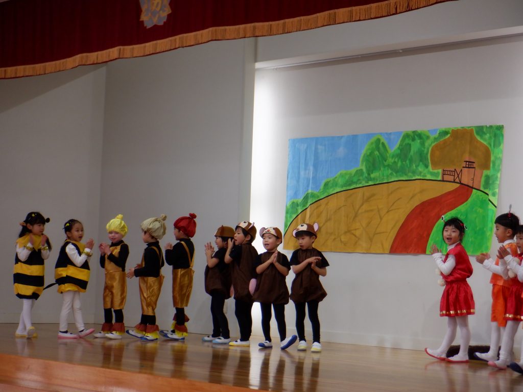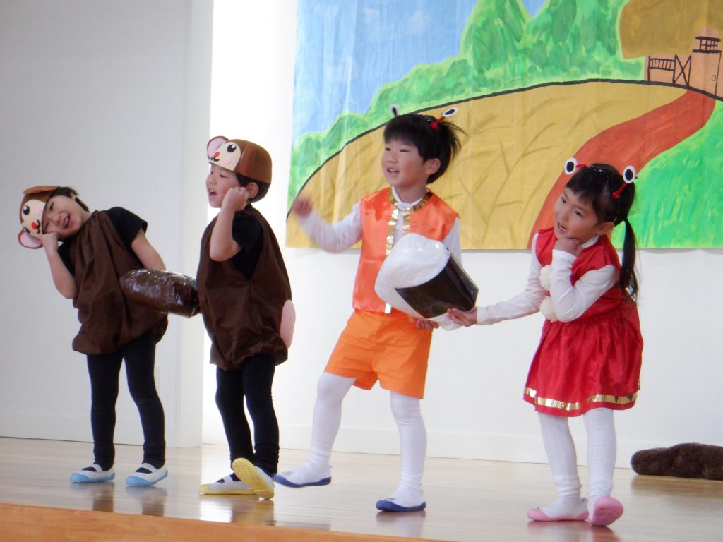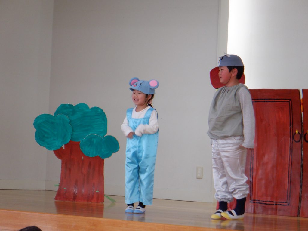 年長さんも、年中・年少の子どもたちの前で、張り切って演じていました。