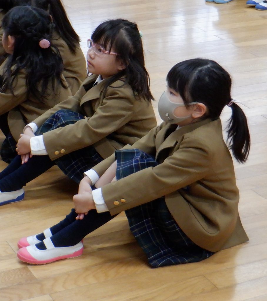 コロナウイルス感染症予防のため、放送で園長先生のお話を聞きました。