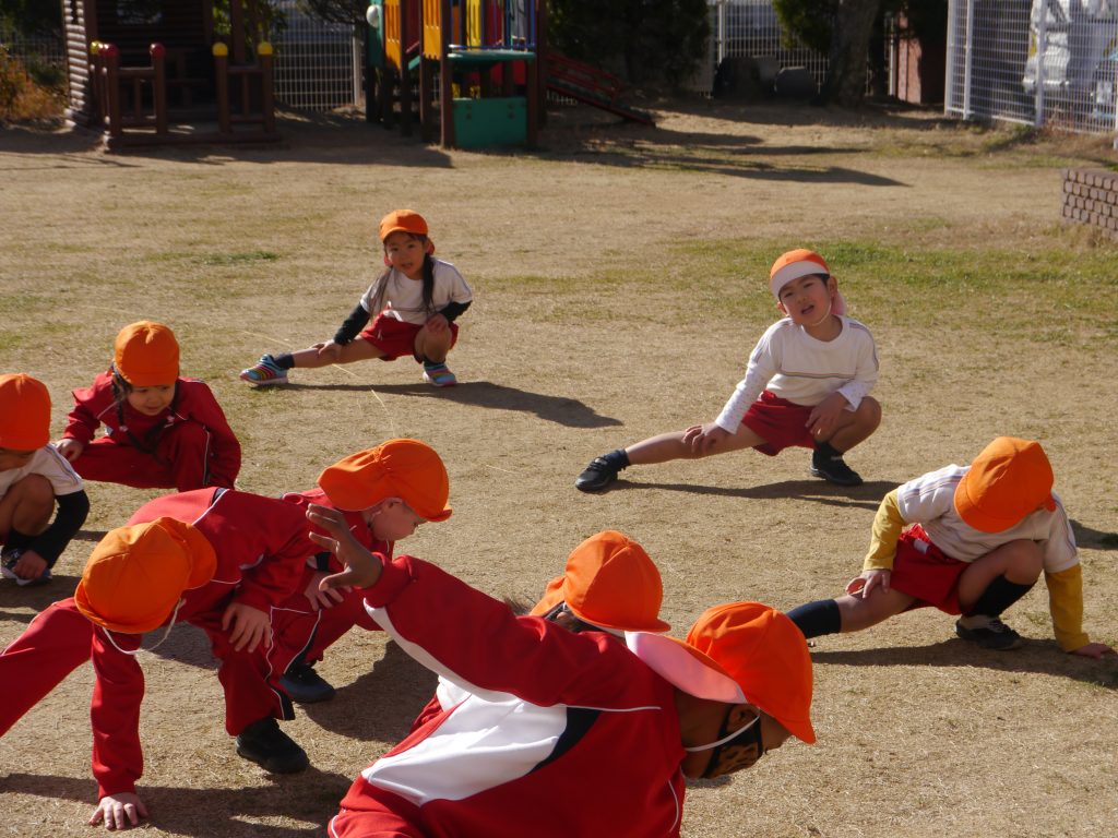 年中さんは、走る前にしっかり準備運動をして(*^^*)