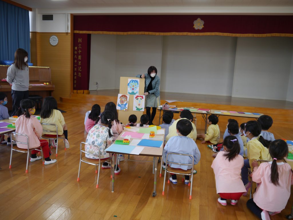 卒園記念を作る「親子絵画教室」は、残念ながらコロナの影響で中止になってしまいましたが、先日の絵画教室では、年長全員が「自分のお顔」を製作しました。