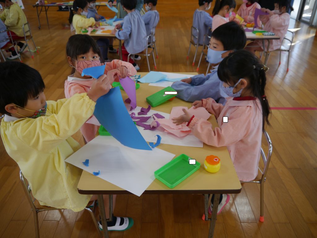 やっていくうちに、みんなスイスイと自分のイメージする形に切り取っていき、楽しそうな表情で作品を作り上げていきました。