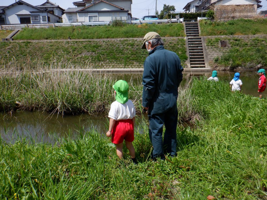 今日は、偶然、❝川の先生❞が幼稚園に遊びに来てくれていたので、一緒に川まで行きました。