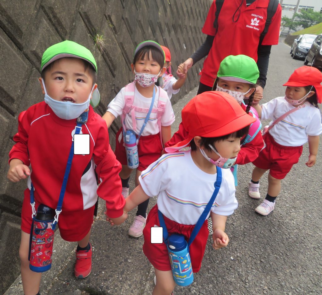 子どもたちの表情には、さすがに疲れが見えましたが、木の実を拾ったり、空を見上げたりしながら、幼稚園までの道のりを頑張って歩きました。