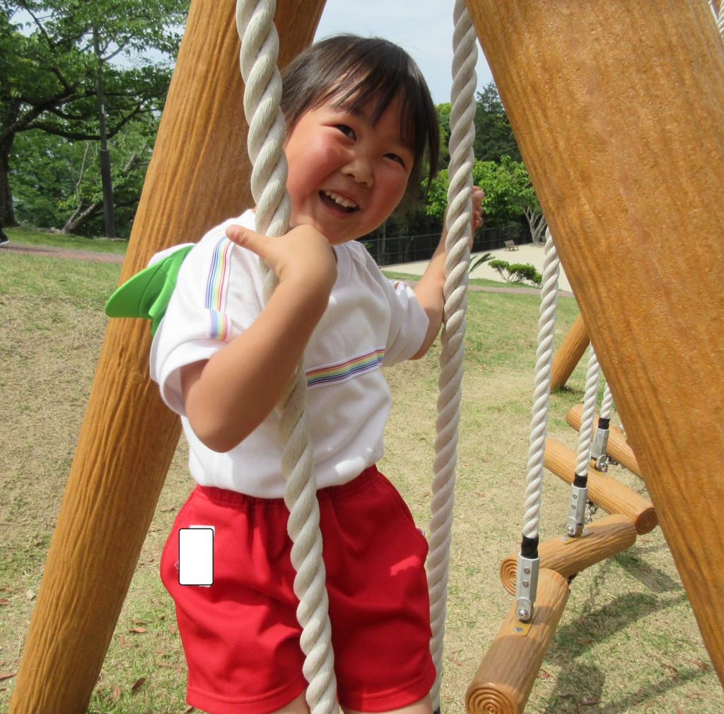お弁当とお菓子を食べた後も、色々な遊具で遊んで、また長い階段を下ります。