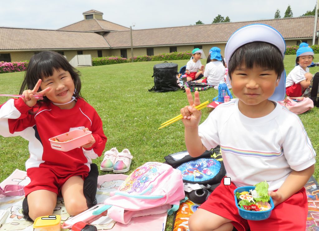 お家の人が作ってくれた愛情たっぷりのお弁当をモリモリ食べる子ども達🌈