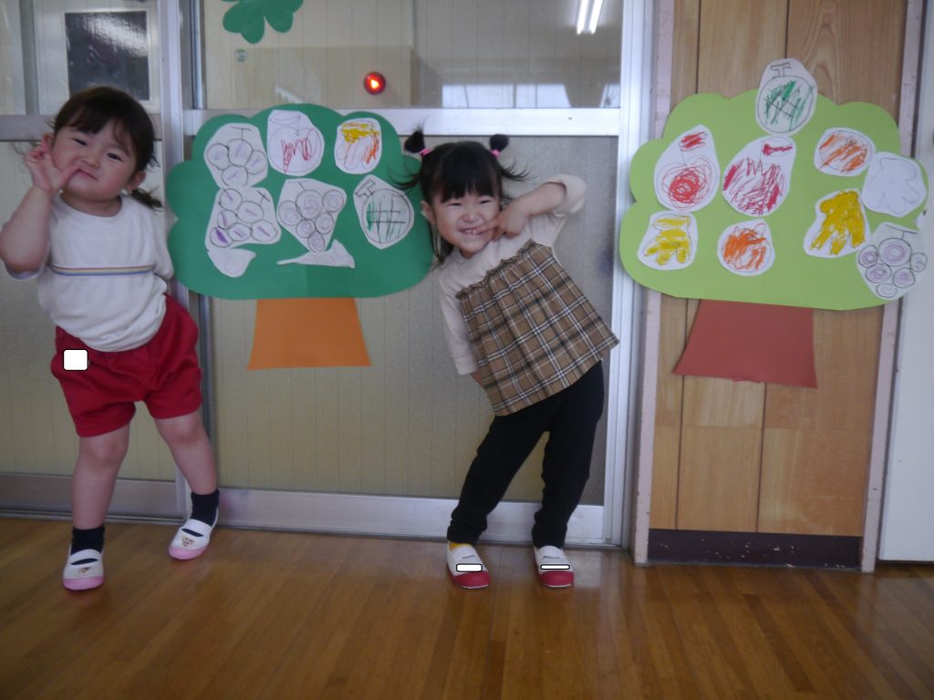 果物に色を塗って、大好きな果物の木を作りましたよ~💛