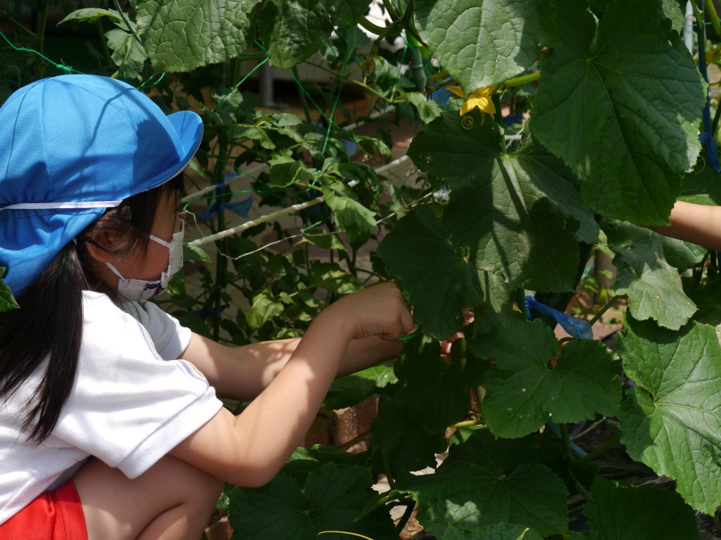 年長さんが園庭の畑で育てていた「花高きゅうり」✨