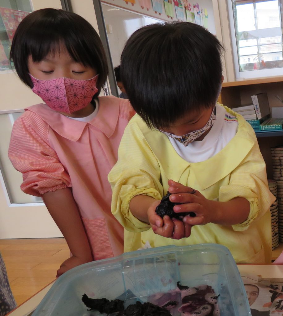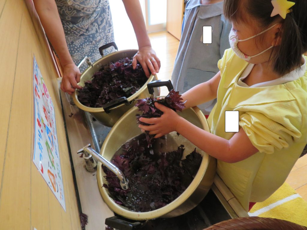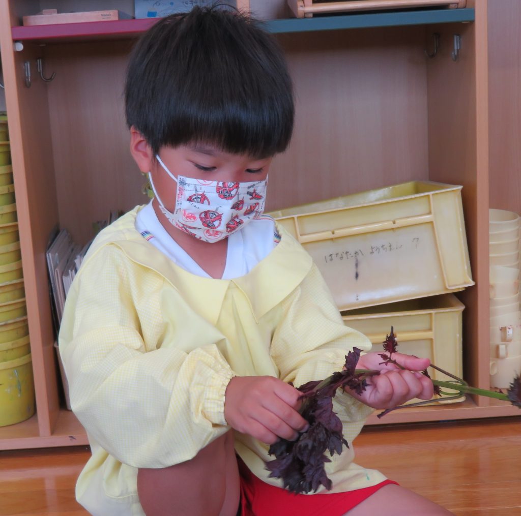 シソの葉の不思議な感触も子どもたちには新鮮なよう😊