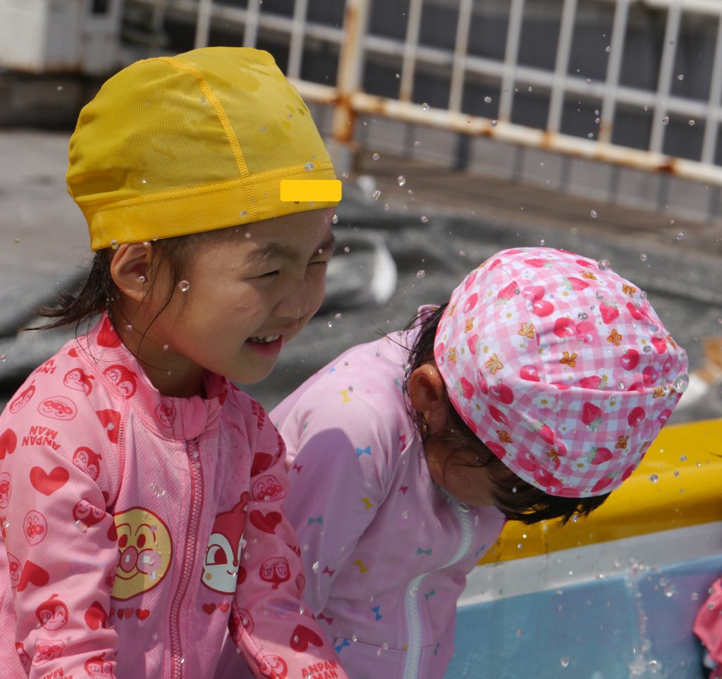 年長さんに続いて・・・今日は、年中組の子どもたちが屋上プールで遊びました🎵