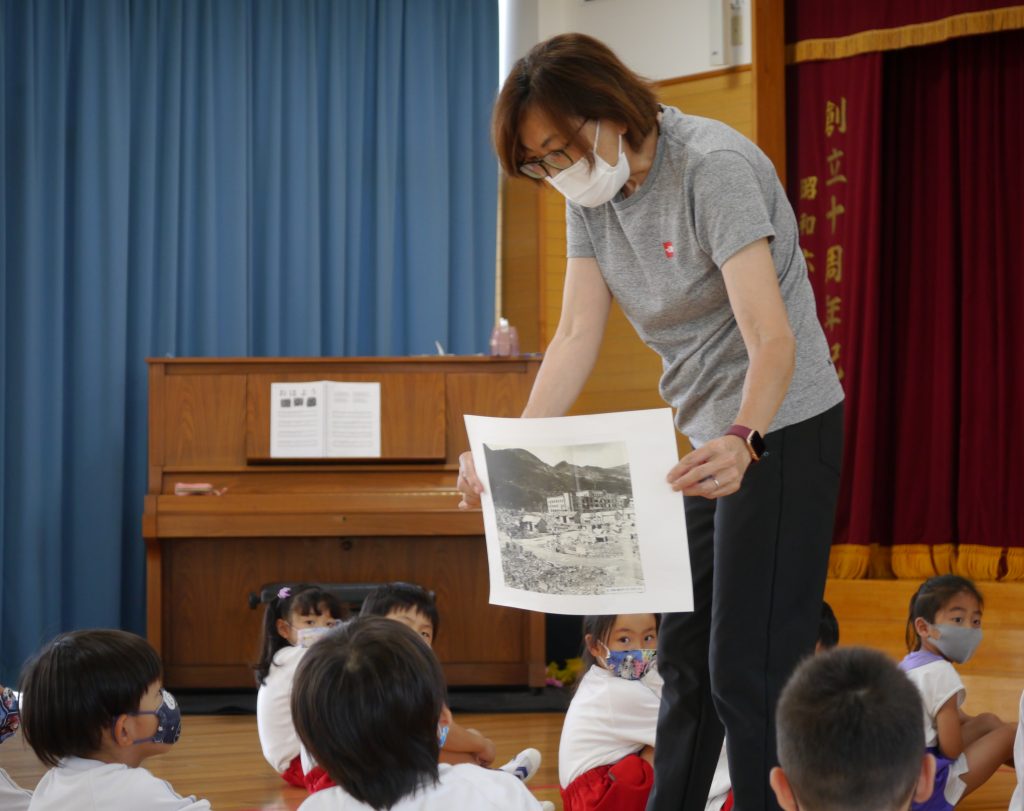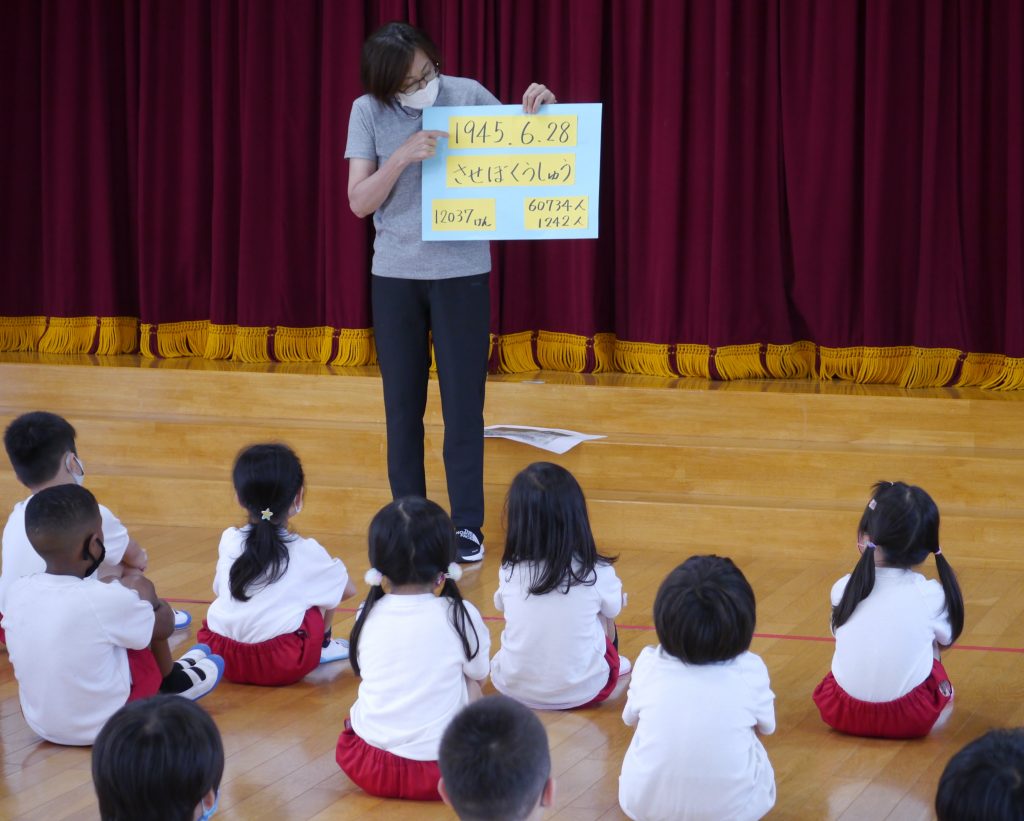 その日にあわせて、花高幼稚園の子どもたちは「平和学習」を行いました。