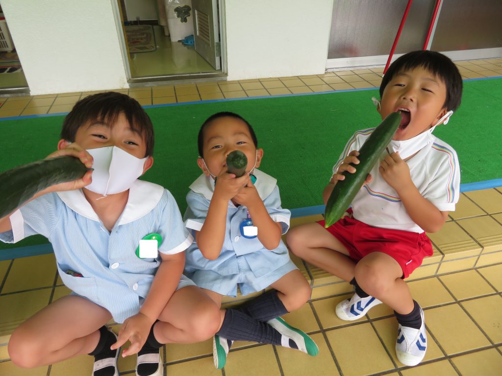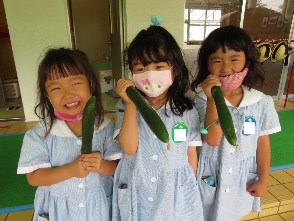 年長さんの畑は、きゅうりが豊作🥒🥒🥒