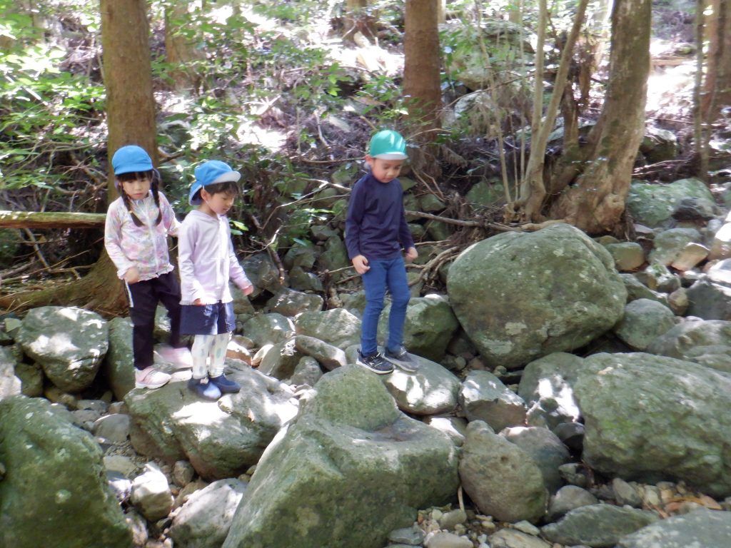 「うわ~岩がいっぱいある~」 「自分で道を見つけていこうね!」