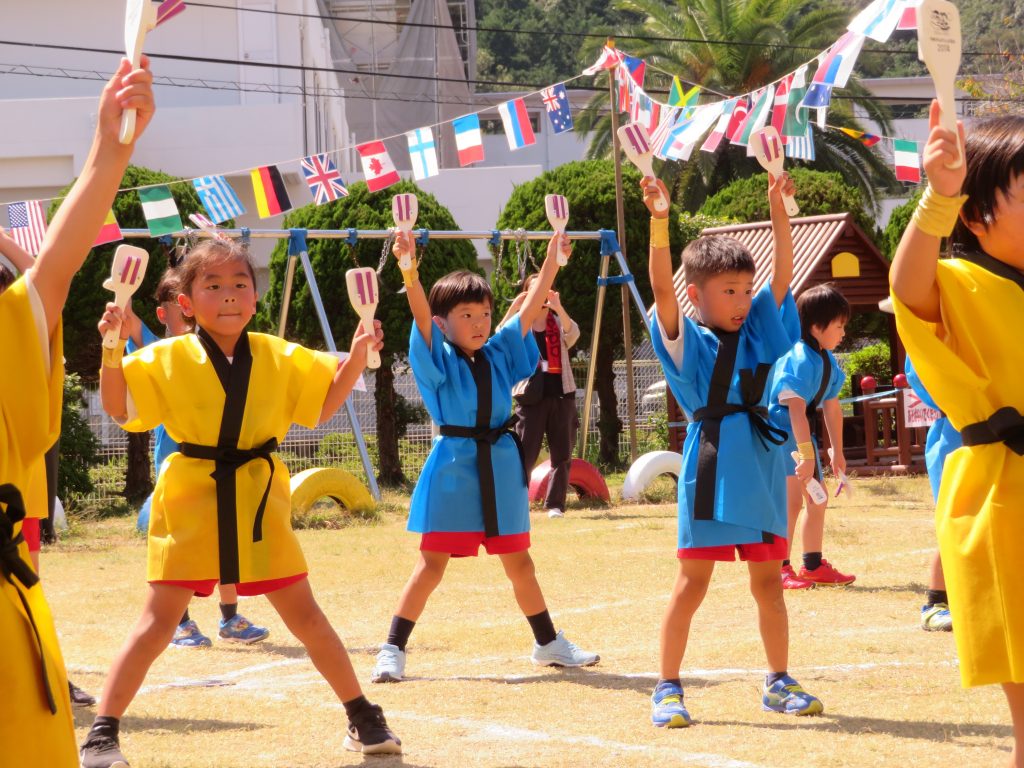 曲の初め、「や~!!!」の掛け声が園庭いっぱいに力強く響いた時には、鳥肌がたつほど・・・✨✨