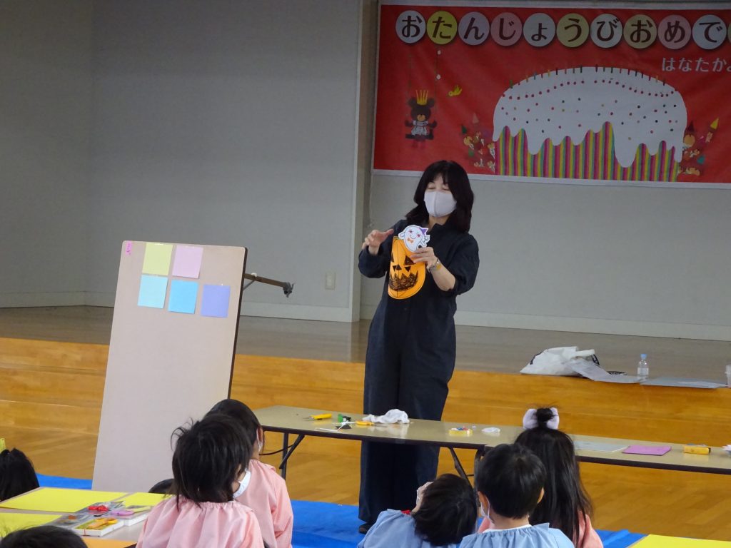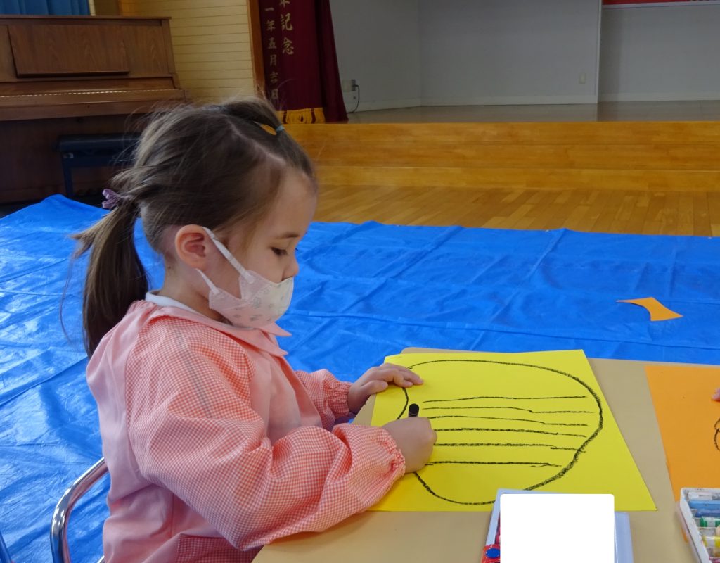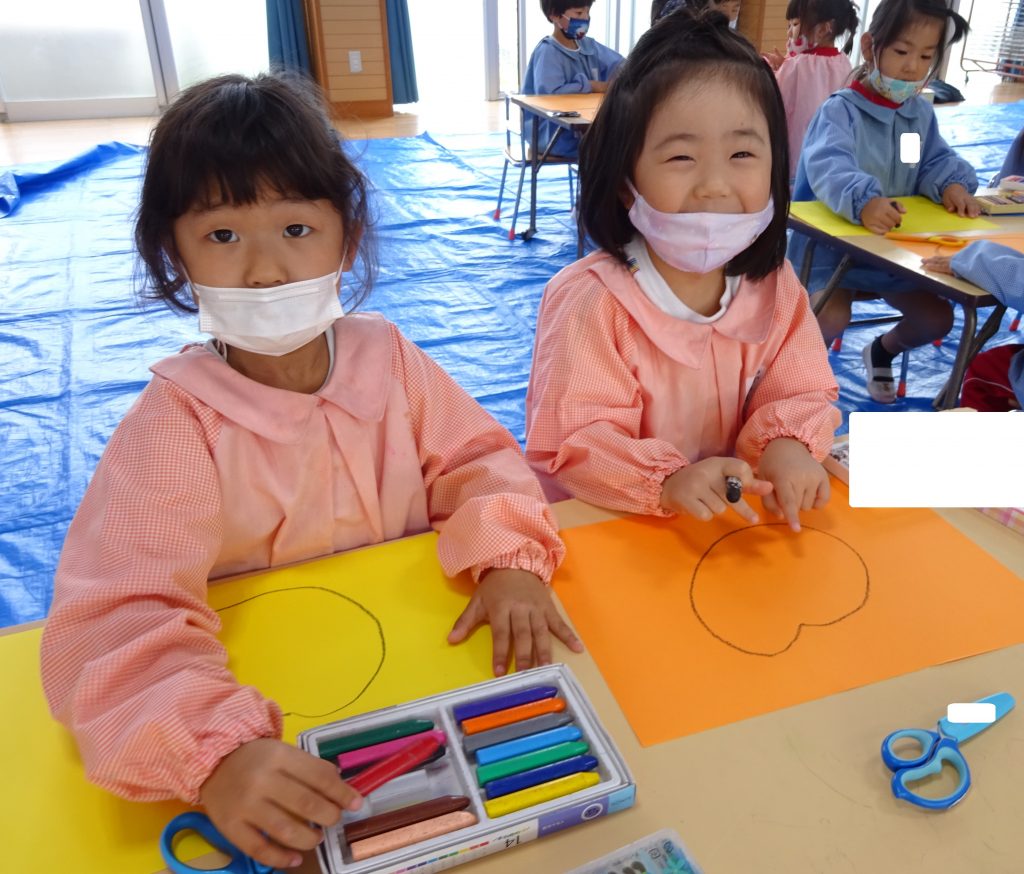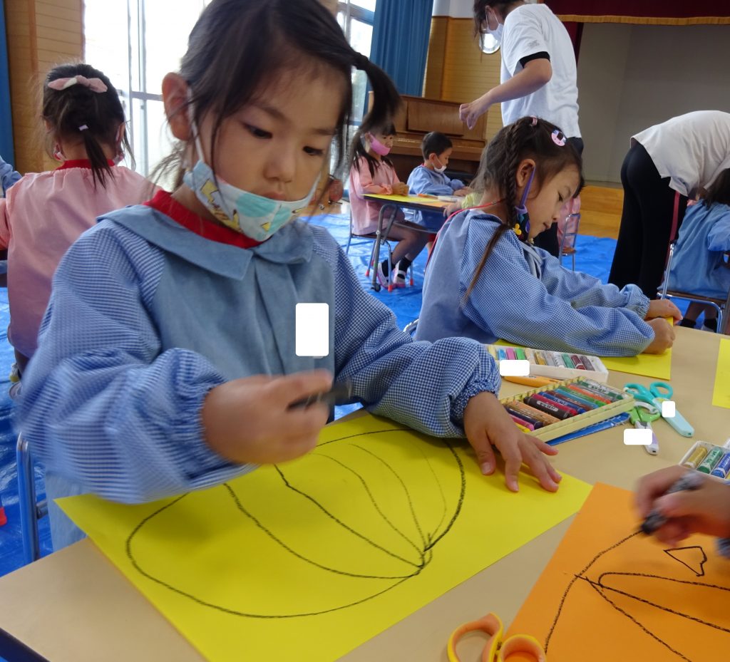 年中さんは、大きなかぼちゃを描いて、ハサミでちょきちょき・・・✄