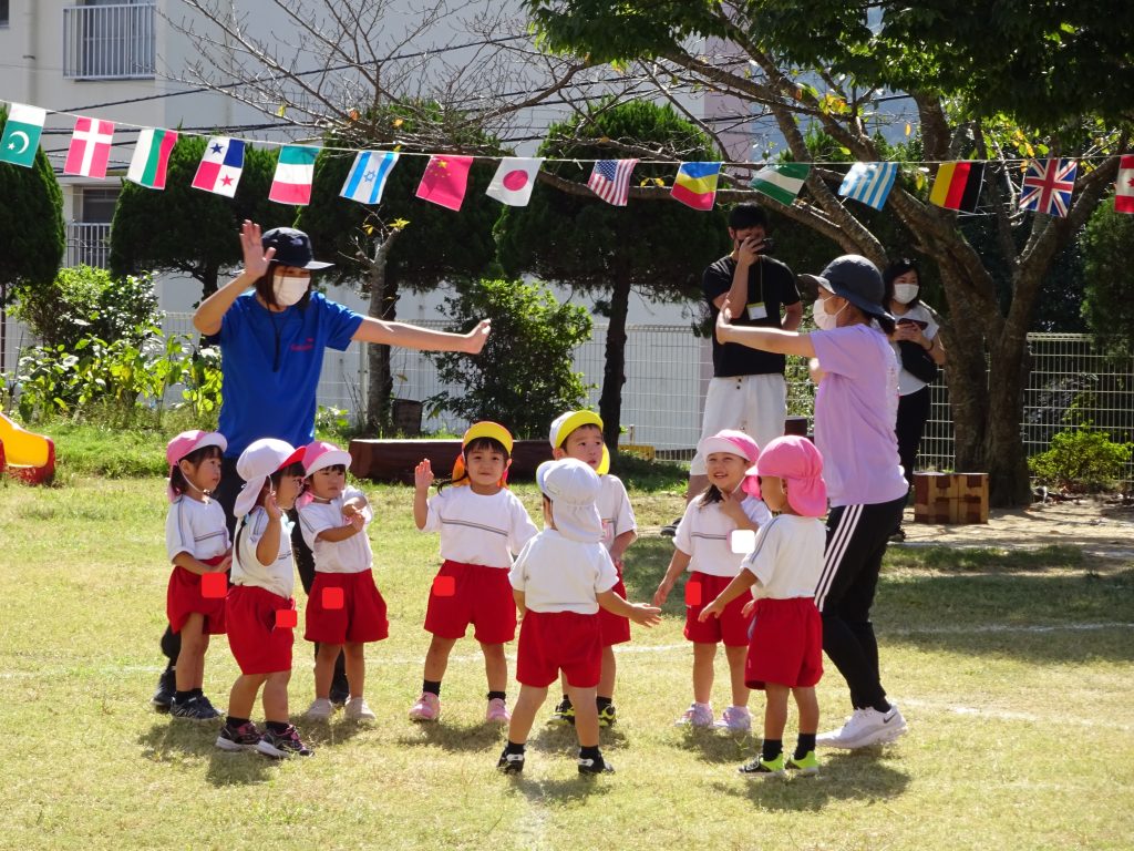 年少組・年少々組の運動会は、かわいらしいエール交換から始まりましたよ😊