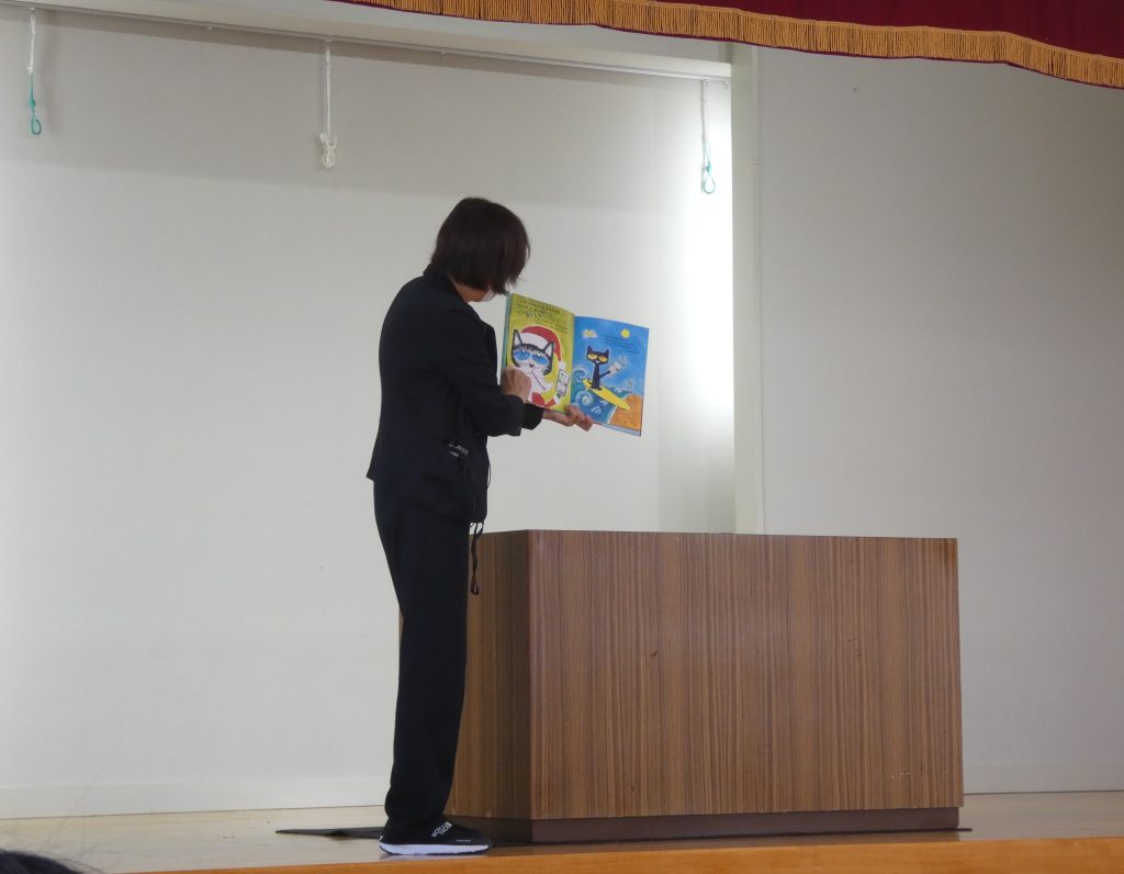 園長先生がねこのピートのクリスマスのお話を読んでくれました😊