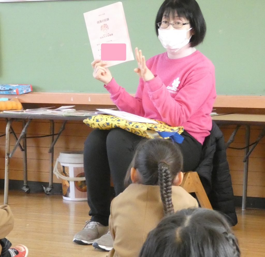 「みんながこんなことを頑張ったよ!こんなことをできるようになったよ!っていうことをた~くさん書いているから、お家の人と一緒に見て、たくさん褒めてもらってね!」