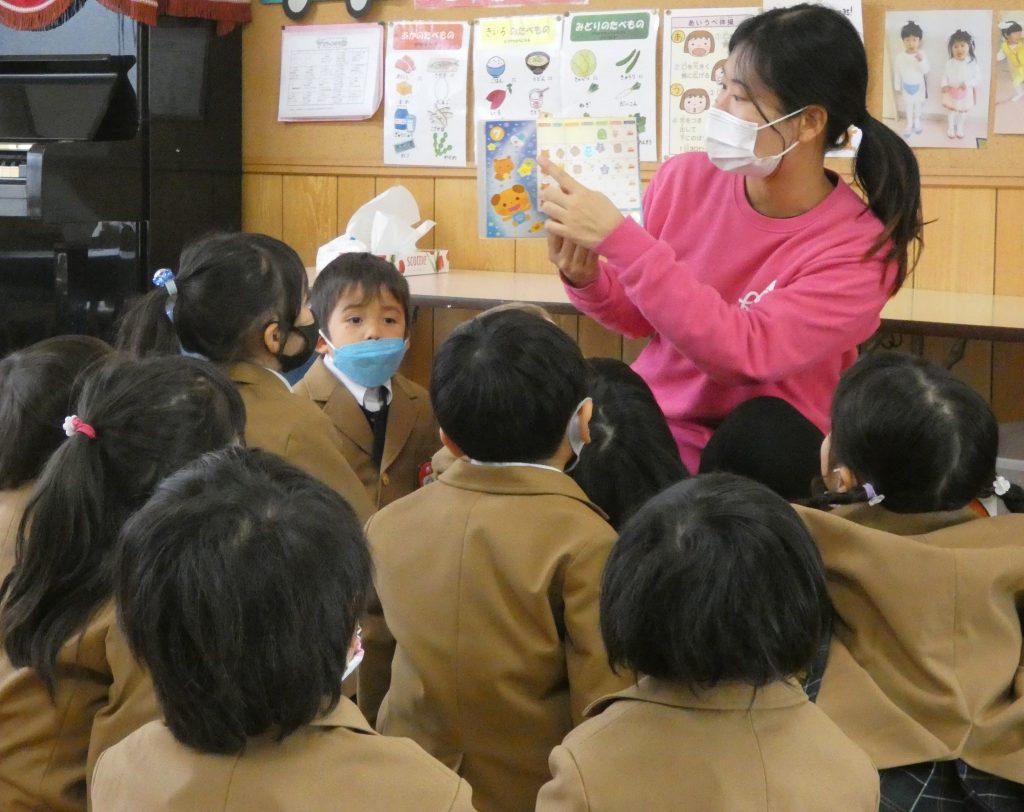 「年少組のみんなは、色々な表現遊びを頑張ったね。お話を聞くのも上手になったね。」