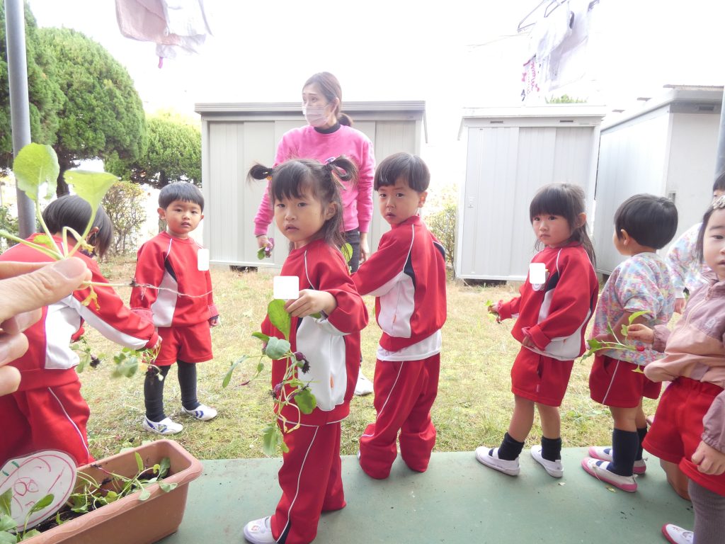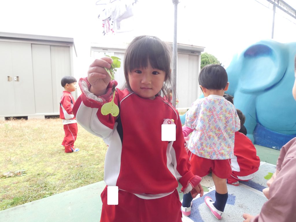 2学期にみんなで育てたラディッシュを収穫する年少々組。