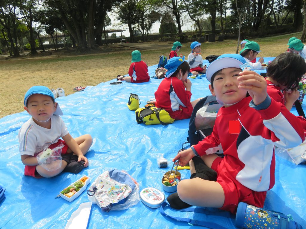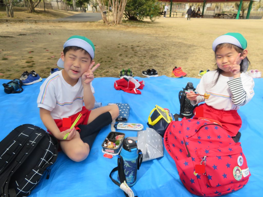 良いお天気の中、大好きなお家の方が作ってくれたお弁当をひろげ、満面の笑み😊