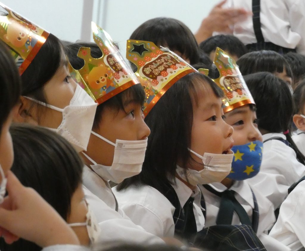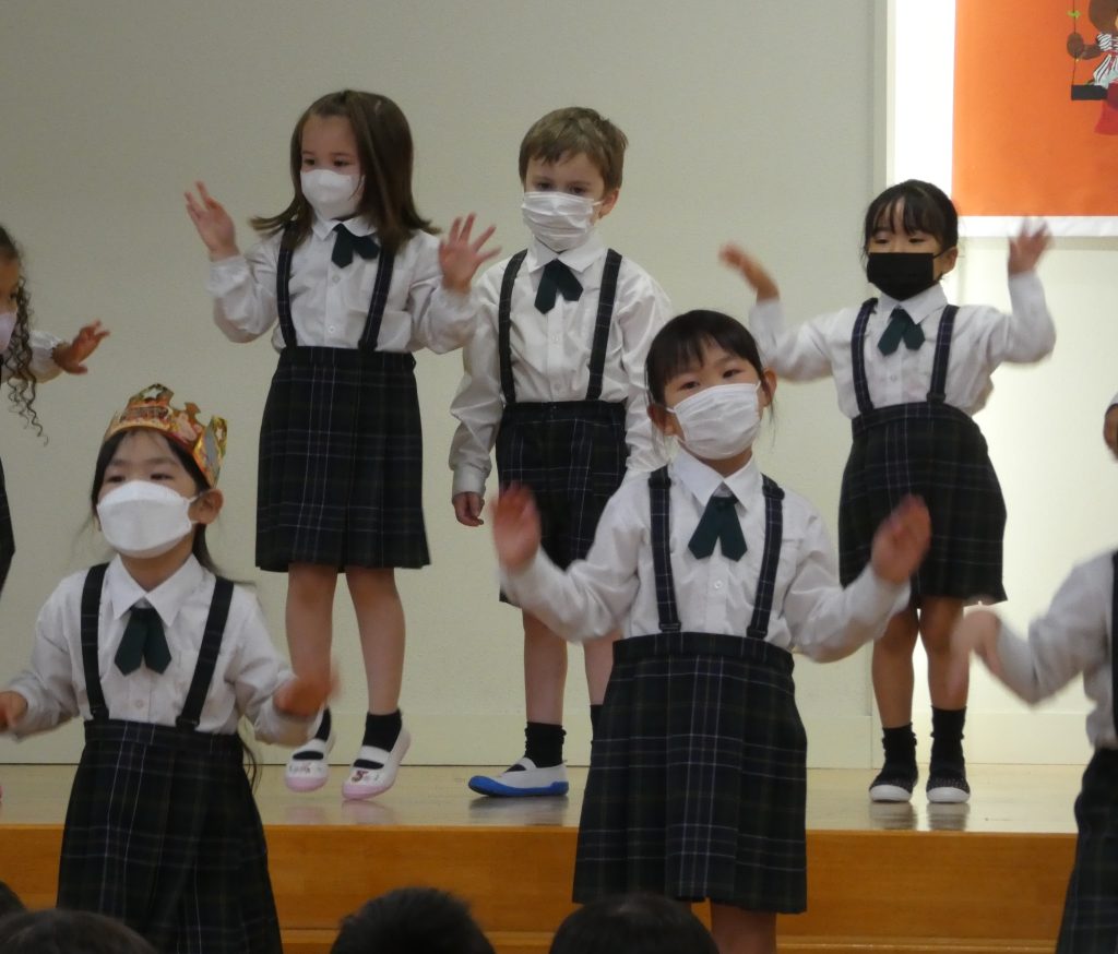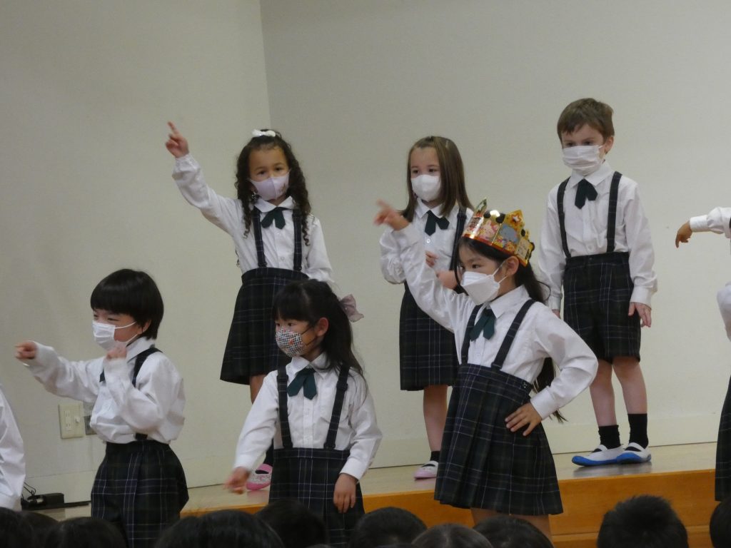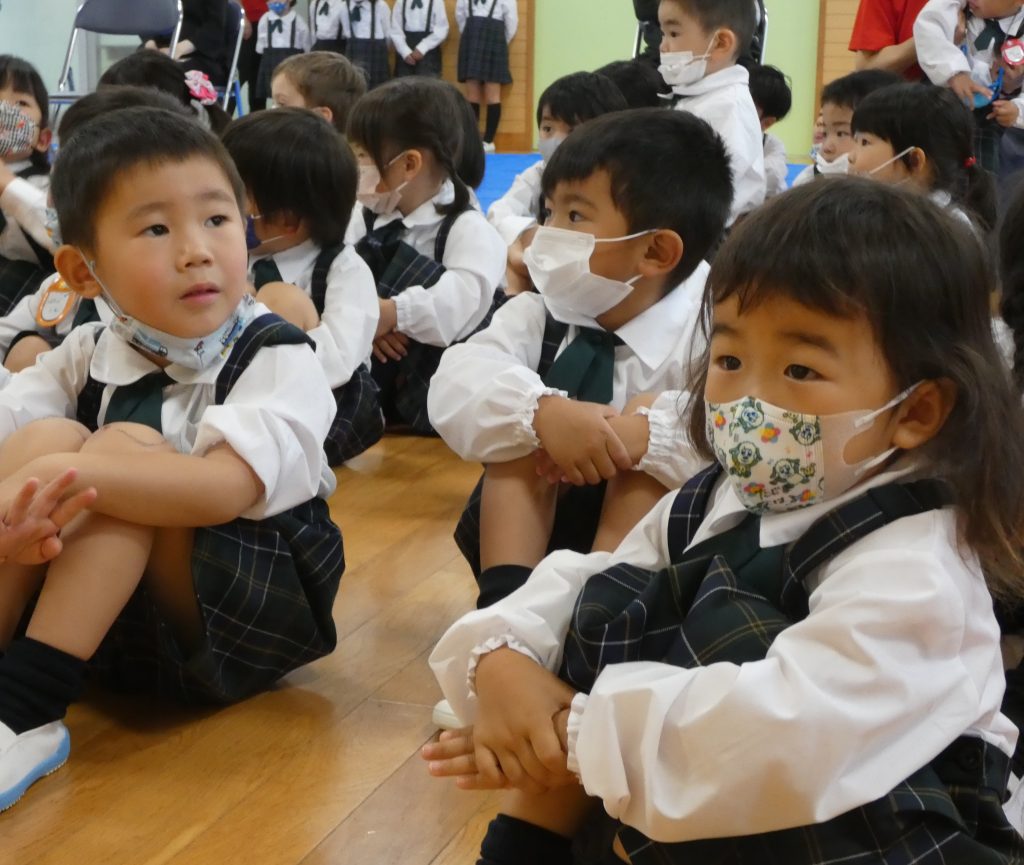 年長組、年中組のお兄さん、お姉さんの素敵な発表を聞いて、年少さんも憧れの眼差し・・・・✨