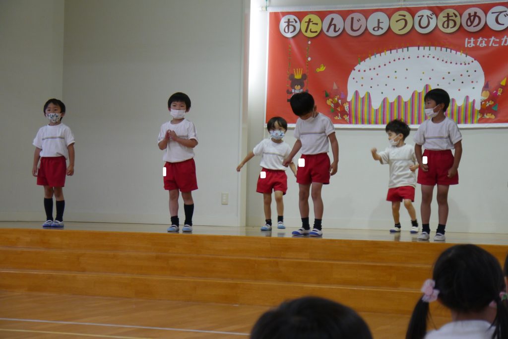 活動の後は、誕生会で披露したダンスと歌を、クラスごとに発表して、お家の方に見て頂きました🎵