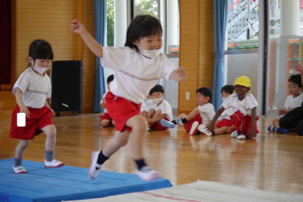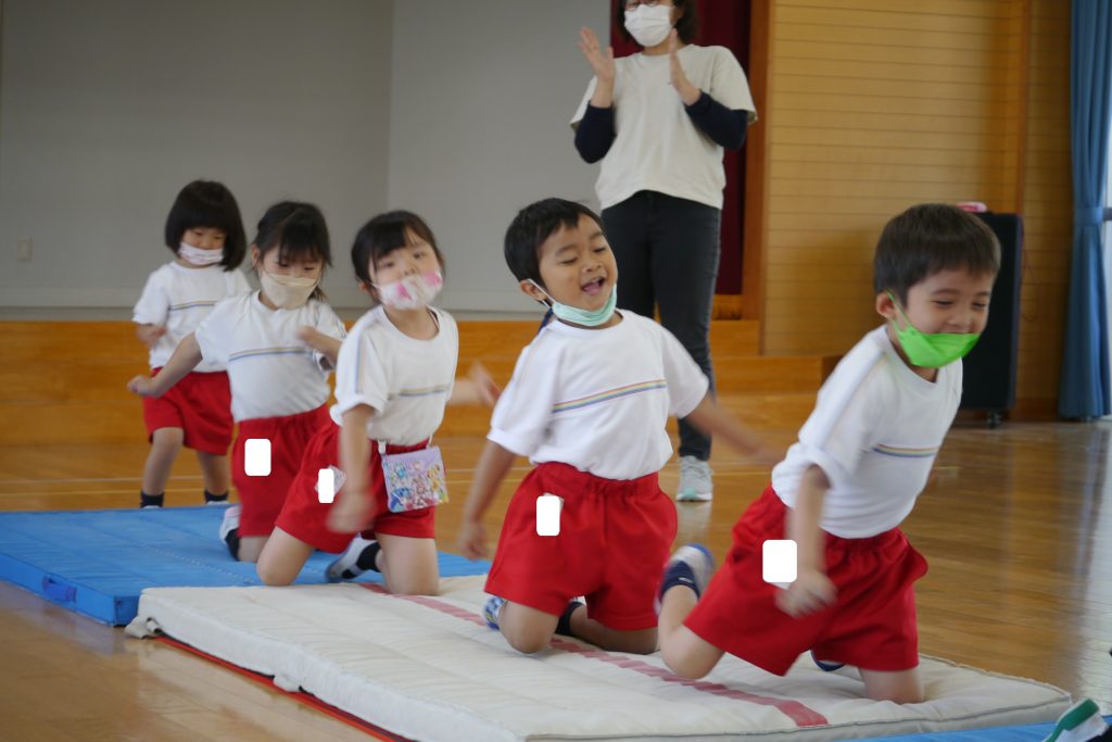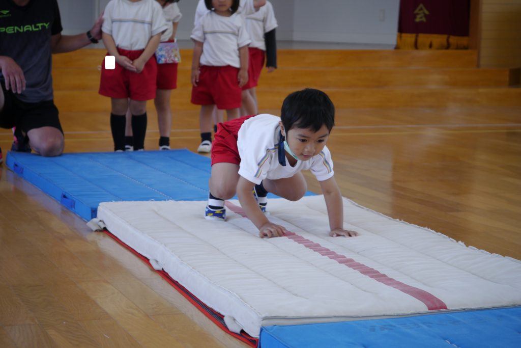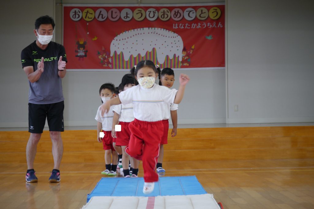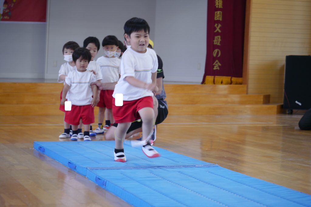最後は、マットを離して、落ちないように上手に飛び越えます!