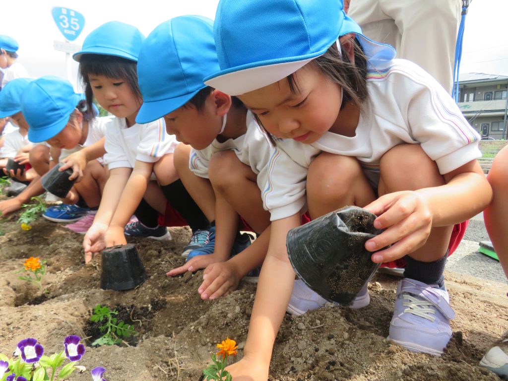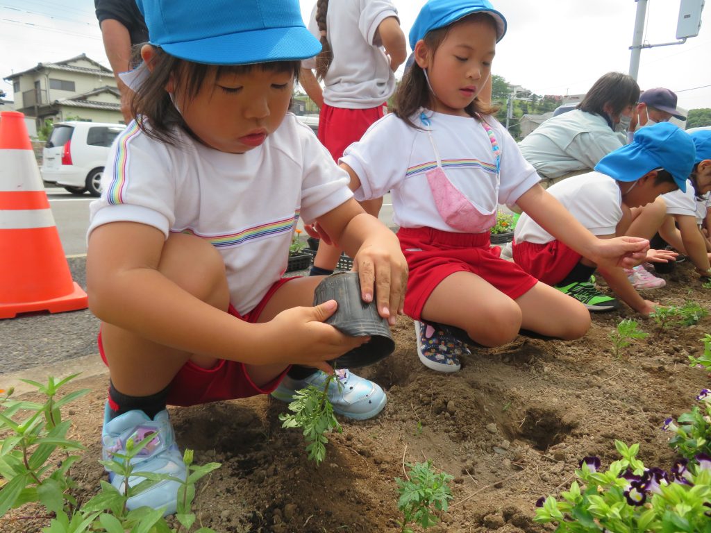 自分たちの手でしっかりとお花を植えてきましたよ😊