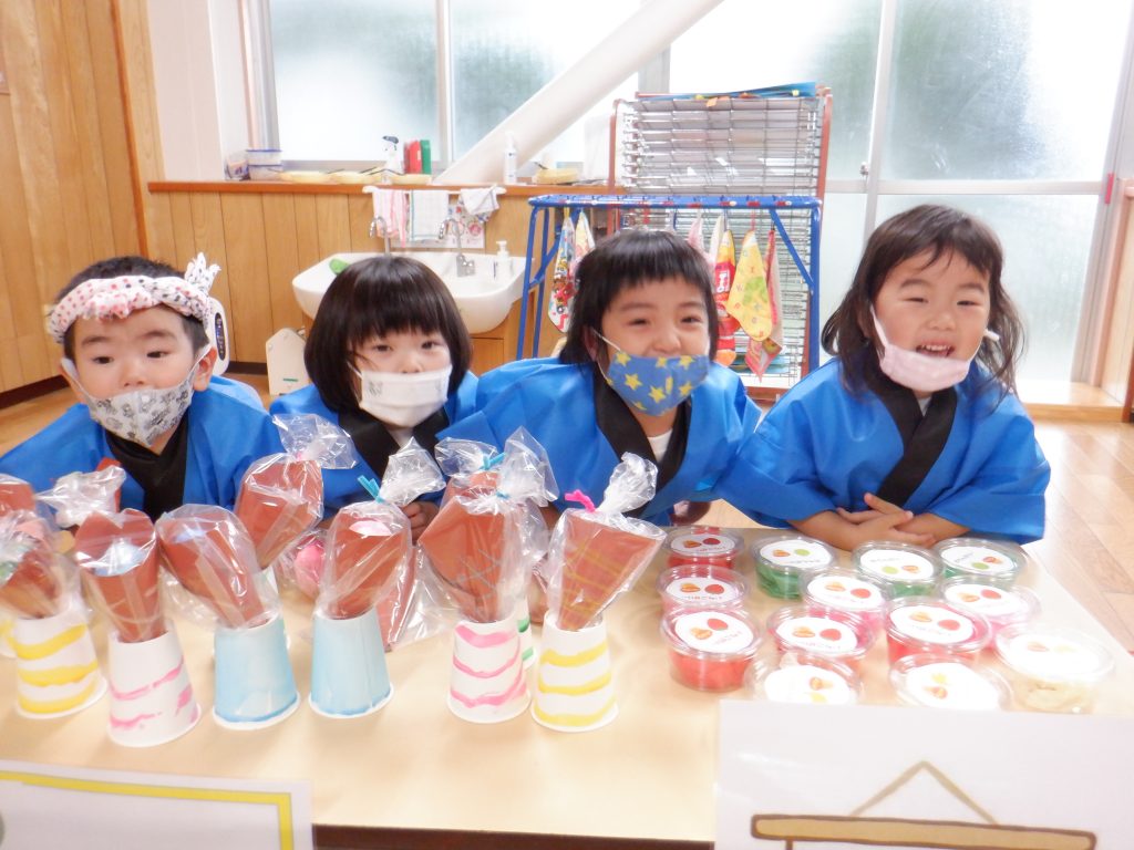 もう1つの年少組‥ちゅうりっぷ組は、アイスクリームとタコ焼きを売りました😊