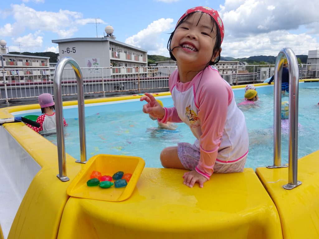 2022.08.03 夏休み🌻預かり保育「ひまわり」 今日も暑いですが、子どもたちは変わらず元気いっぱい✨😊✨ 今日は、年中組と年長組の子ども達の水遊びの様子💦 屋上プールから楽しそうな声が聞こえています🎵 子どもたちは、すっかりお水と仲良しのようです! す~いす~い!気持ち良いな~!!! お水の中で色んなポーズ?!☻楽しそう💛 仲良しこよし(⋈◍>◡<◍)。✧♡ お友だちと一緒って楽しいね😊 宝探しをしてみたり・・・🎵 バ~ン!何かを狙ってみたり・・・🎵 まだまだ遊び足りない様子の子ども達でした😊 最高の笑顔😊を頂きました!!!!!