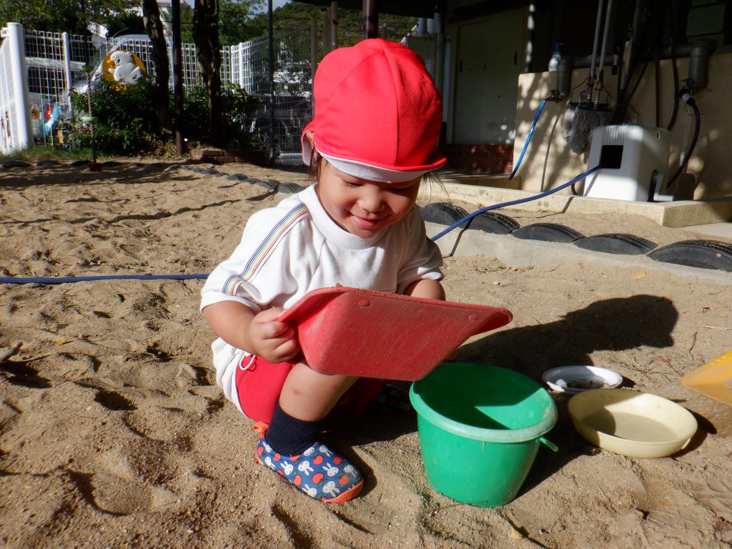 砂遊び用のスコップを持ち出しました!
