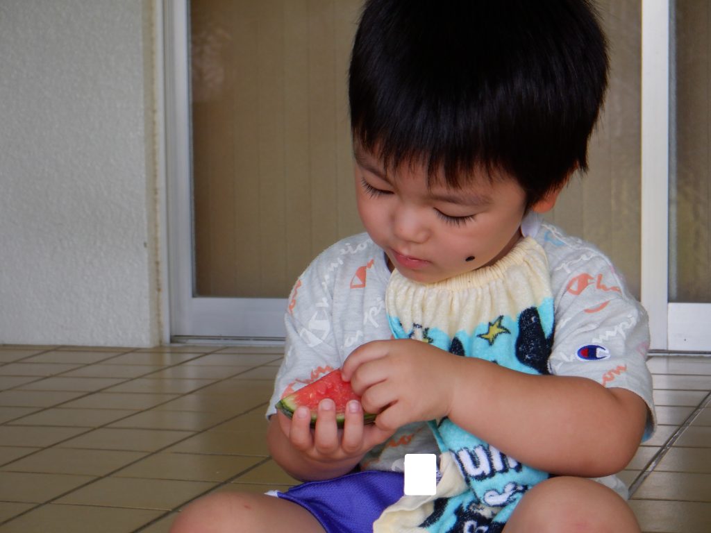 自分で器用にスイカの種をとり始めました🍉