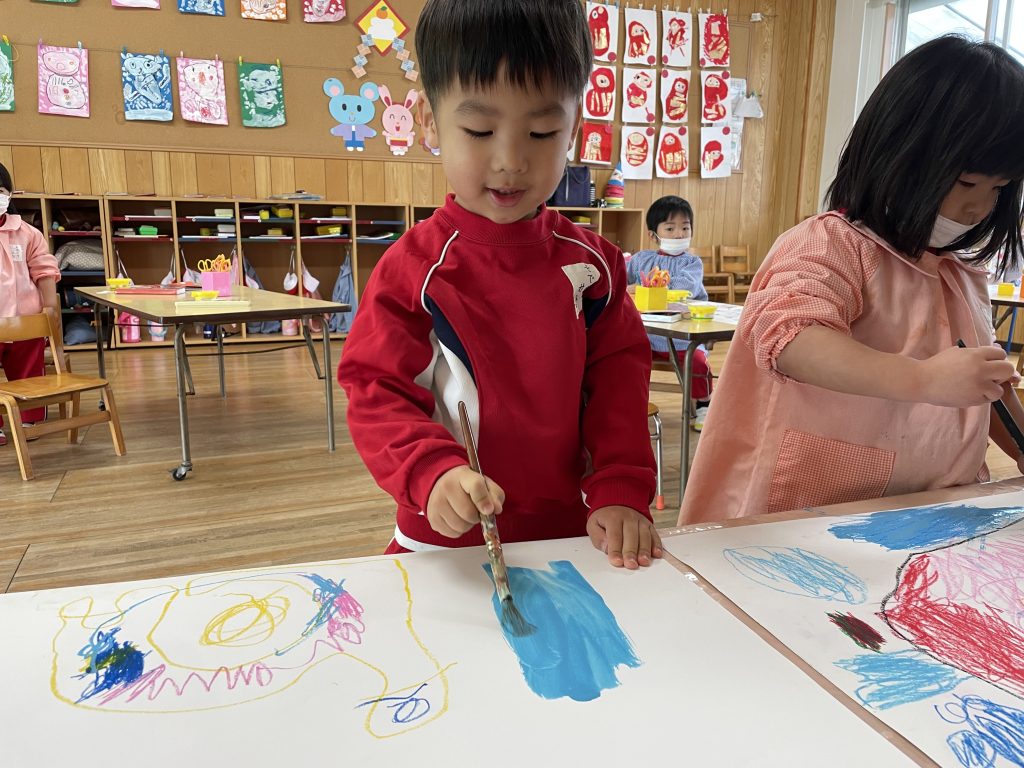 2023.02.13 1月の子どもたち 「1月はいく」「2月はにげる」といわれるように一日一日があっという間に過ぎていきます。 寒い1月でしたが、子どもたちは元気いっぱい、笑顔いっぱい! 1月生まれのお誕生会。 お誕生会ではすみれさんが素敵なダンスを披露してくれました。 年少さんの絵画教室。かわいい雪だるまさんが完成! 年長さん絵画教室。素敵なおうちを描きました。 年中絵画教室。かわいいロボットが出来上がりました。 年少々 すみれ組さん。給食もりもり、元気いっぱい。今日は水曜日でパンの日だよ。 お砂場大好きな子どもたちです。 寒さに負けず、マラソン大会の練習を頑張りました。 年長さんが園外にお出かけ。花高中央公園の階段をよいしょよいしょ。 年少さん。ハサミの使い方が上手になってきたよ。 年少さん。絵具も上手にぬりぬり。 年長親子絵画。将来はどんなお仕事がしたいのかなあ。 年長親子絵画。親子で力を合わせて完成!