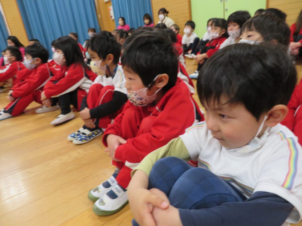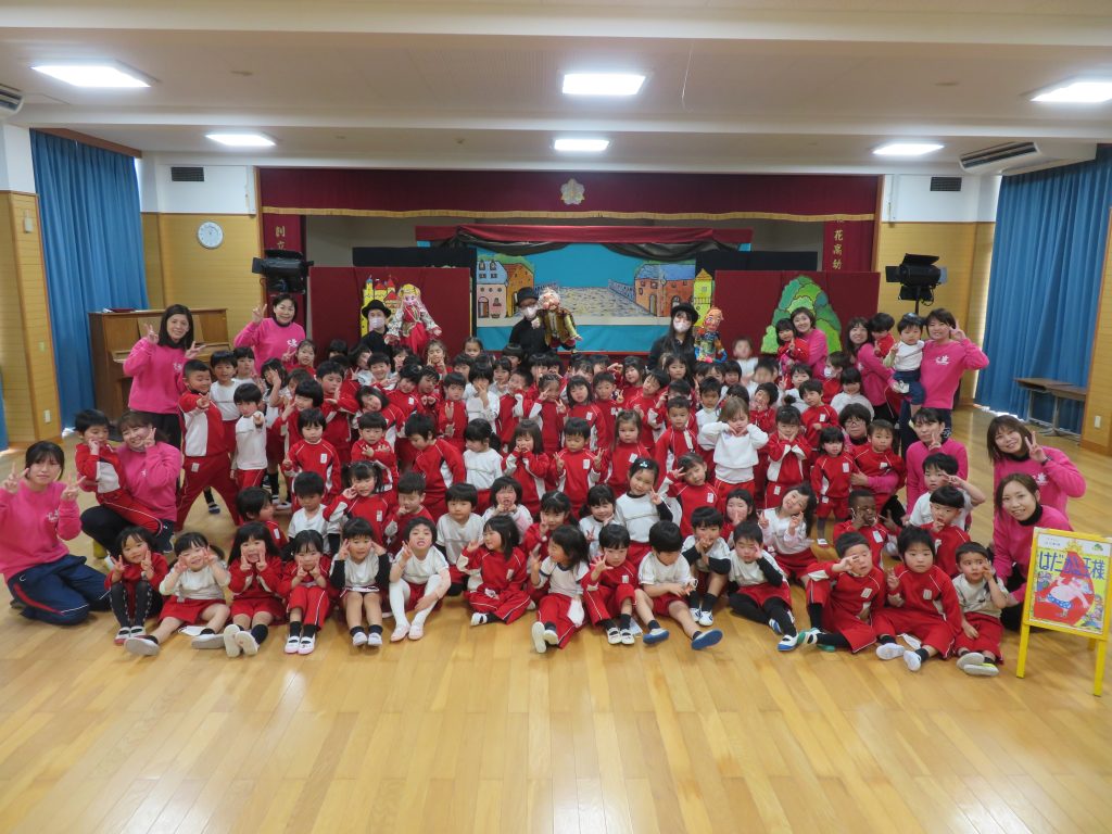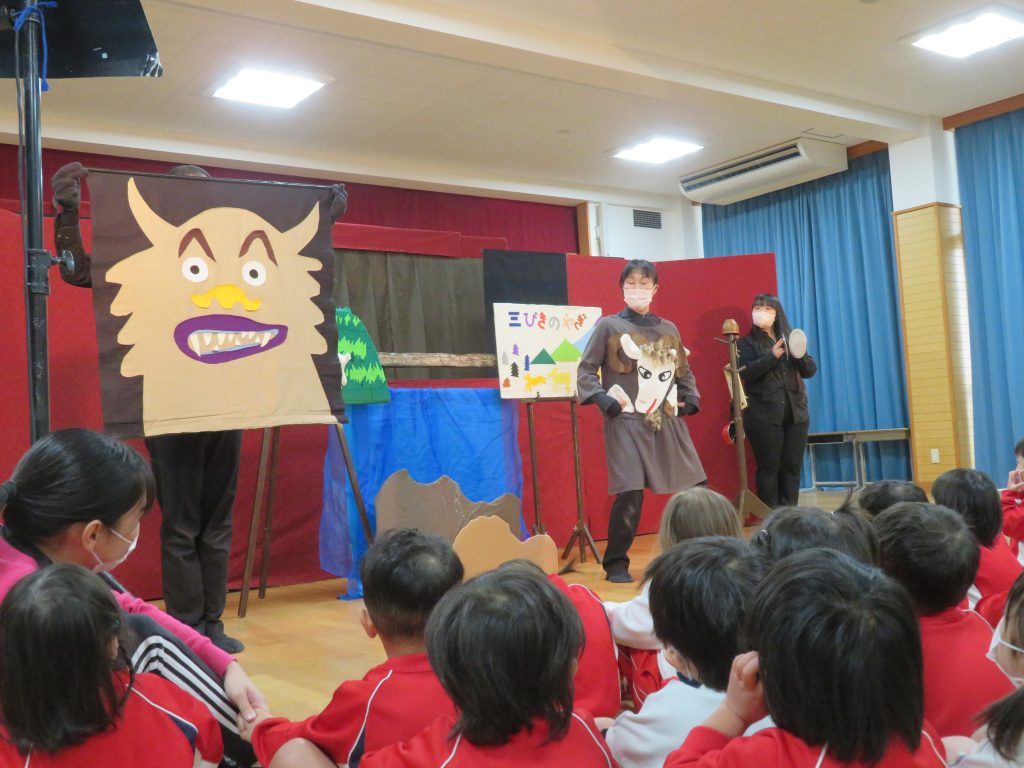 2023.02.21 人形劇:劇団すぎのこ 保護者会主催のバザーの収益で子どもたちに人形劇を見る機会をいただきました。 今回は、劇団すぎのこさんによる「三びきのやぎのがらがらどん」と「はだかの王様」を鑑賞しました。はじめて人形劇を見る子も多く興味津々。1時間の公演でしたがお話を楽しんでいた子どもたちです。 保護者の皆さん、ありがとうございました。