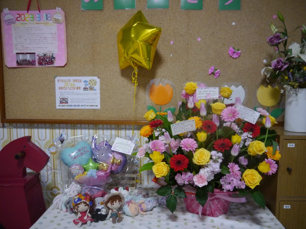 2023.03.22 卒園おめでとう 3月18日39名の年長さんが卒園の日を迎えました。 「わくわく」をテーマに楽しい保育を展開してきました。 大きく成長し立派に卒園証書を受け取る姿に職員も感無量。 小学校生活も「わくわく」楽しんでくれることを願っています。 お祝いのお花やメッセージ、バルーンがとどきました。