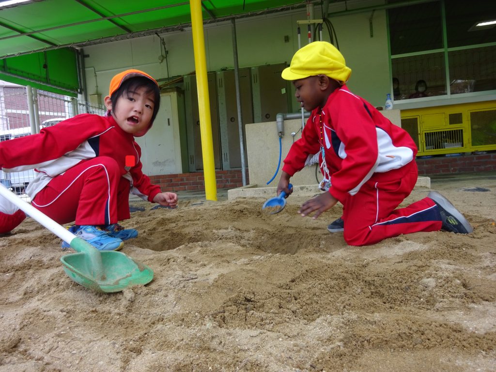 園庭では、一緒に大きなお山を作ったり・・・✨