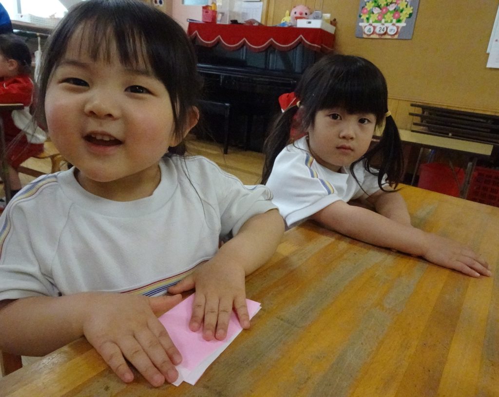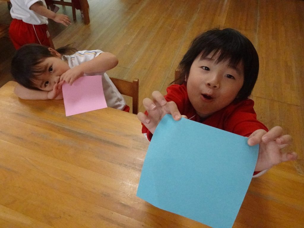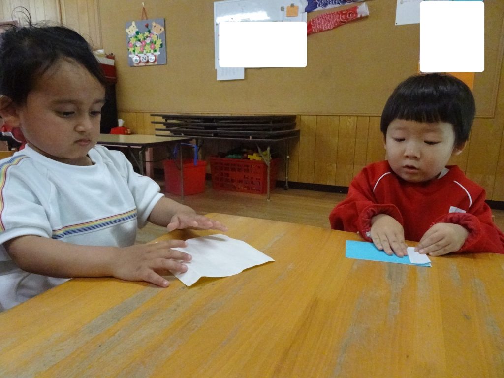今日は、給食の後、みんなで折り紙に挑戦したよ🎶