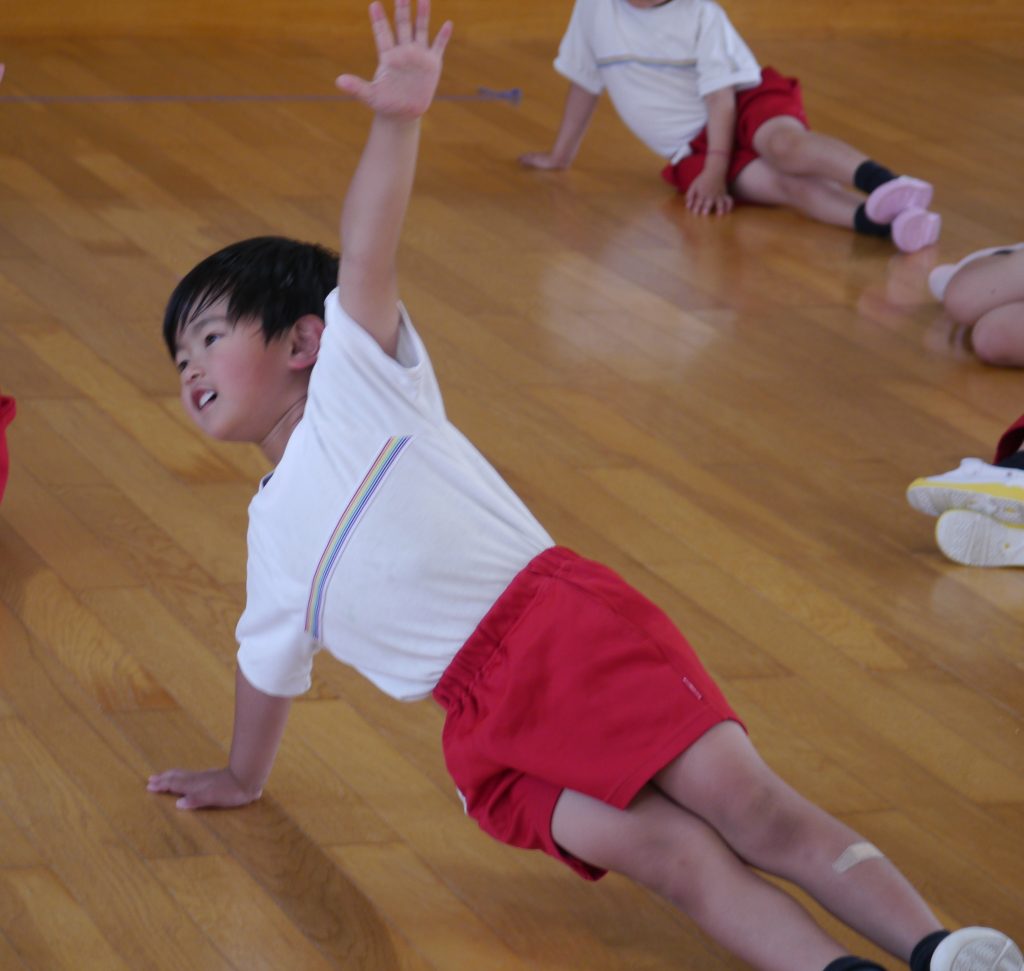 今年の運動会で組体操をやってくれそうな、やる気満々の年中さんです😊✨