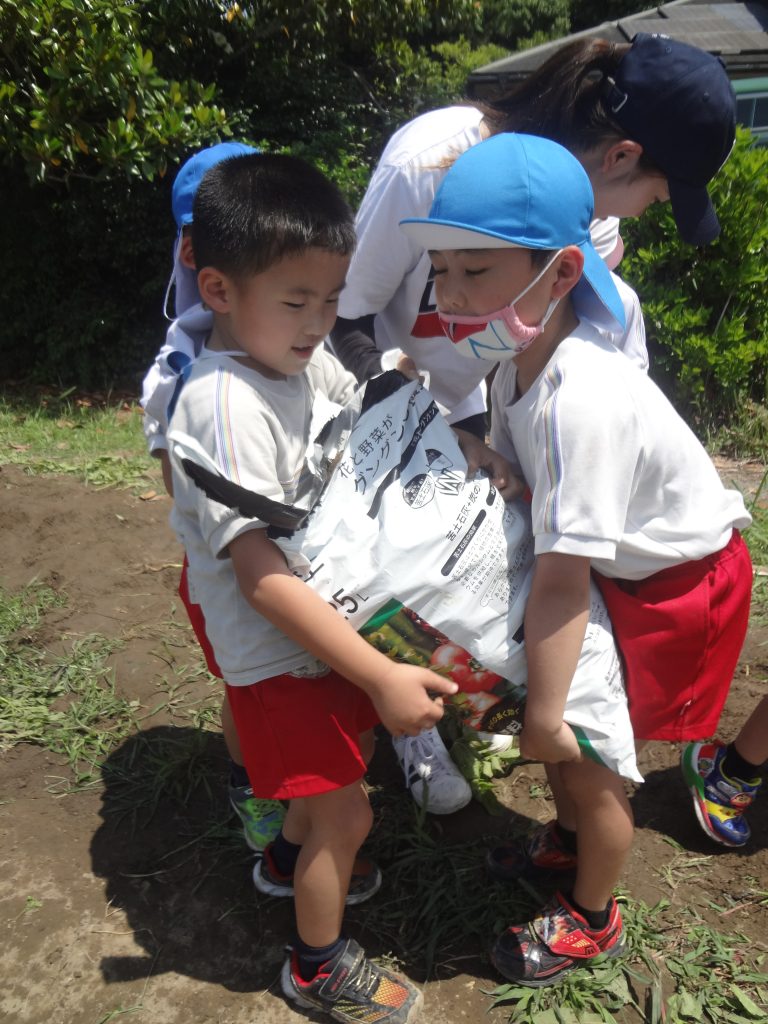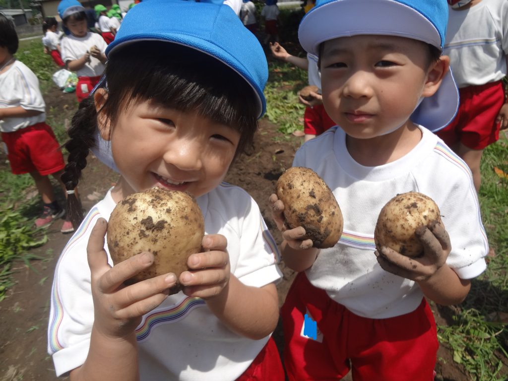 2023.06.13 じゃがいも収穫 重尾の畑のジャガイモが育ちました。年長さん、年中さんで収穫に出かけました。 なんと100キロの収穫。みんながんばったね~!! 今日は、あつかあ~ 見て見て、こうなってるのさ。 ほらほら、掘ってみるといっぱいでてきたよ。 うわ~重い!こんなにとれたよ。 お顔とおんなじくらい大きいよ。 ジャガイモほりの様子は、6月23日TVS佐世保スッポットインサセボで放映される予定です。ぜひ見てくださいね。