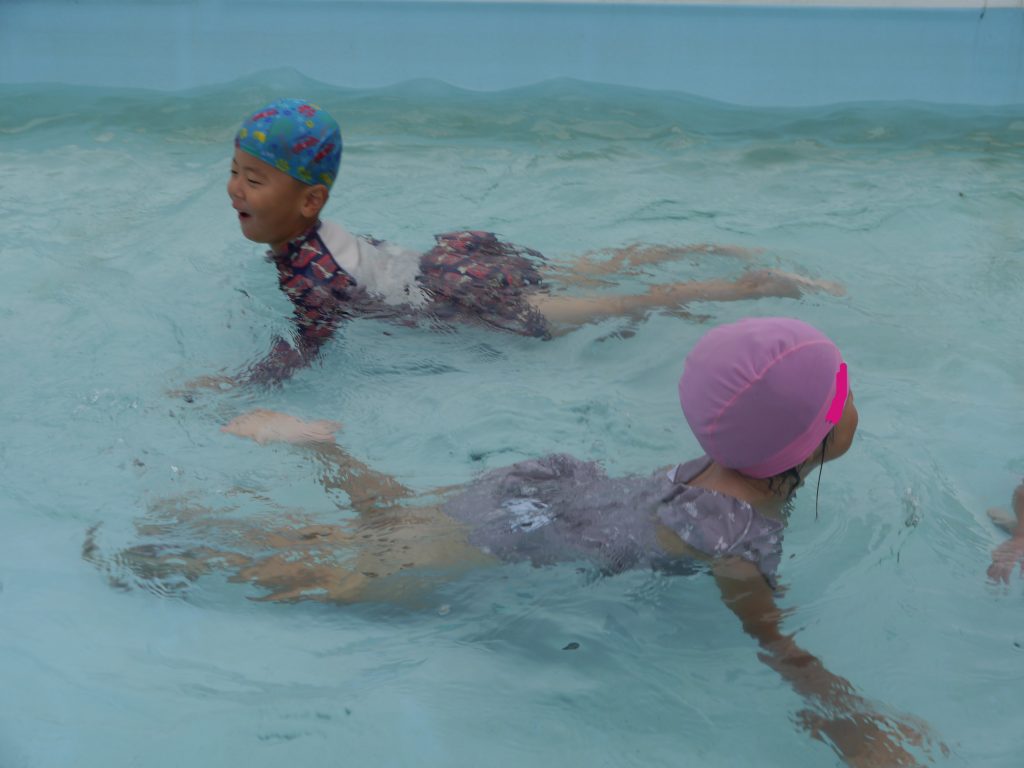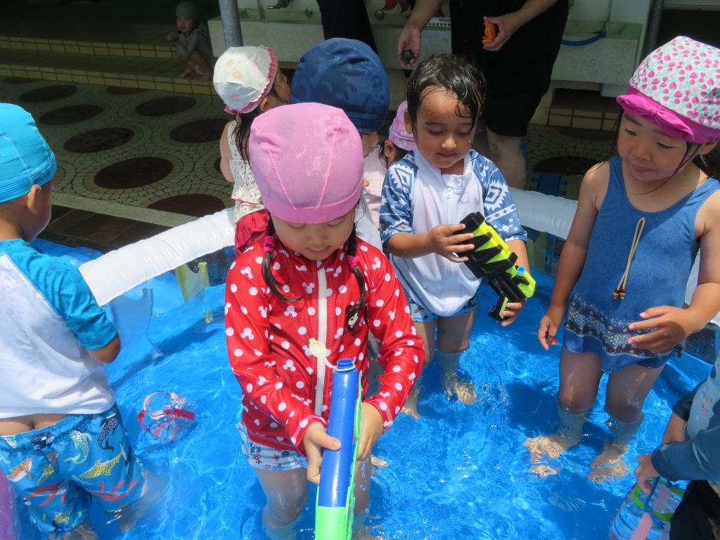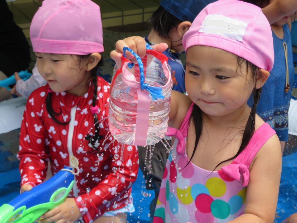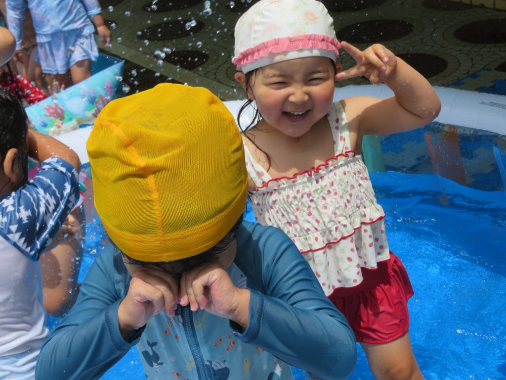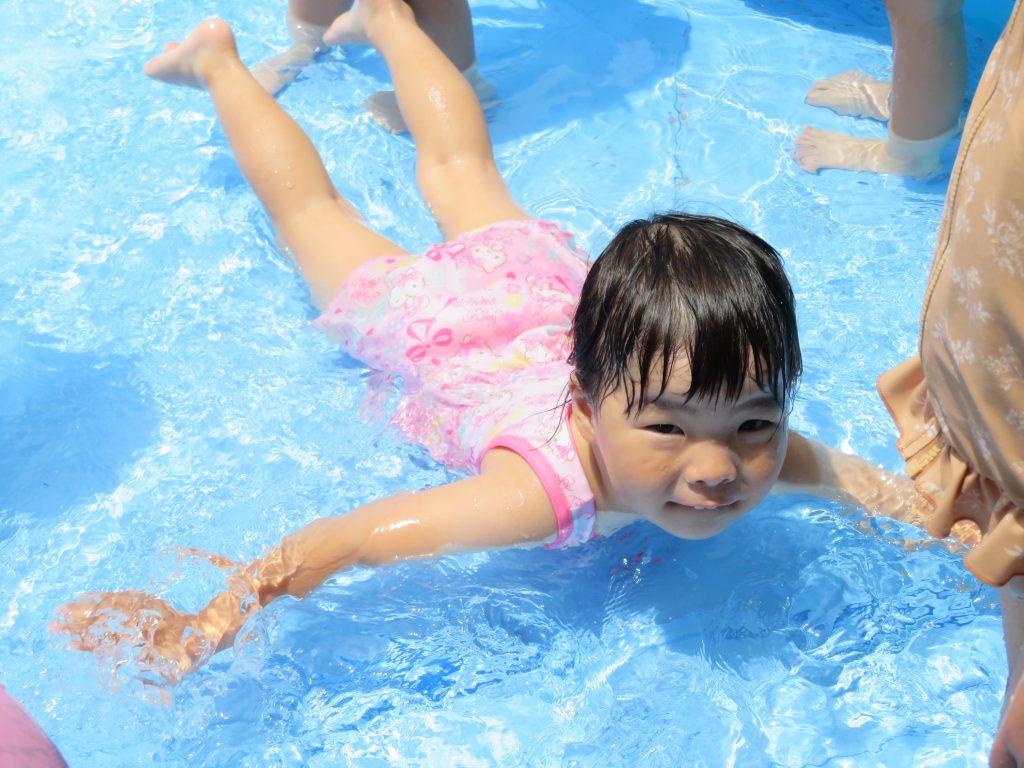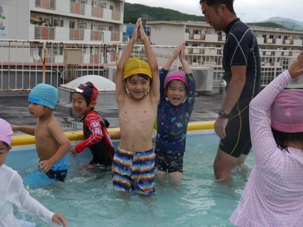 2023.06.22 プール遊びがはじまりました 昨日は気温が低く、年少さんはプール遊びを断念しましたが今日はお日様きらきらで年少さんも待ちに待ったプーる遊びができました。 「わあ、つめた~い」 「いえ~い ✌」 「みずがかかっても おめめあけれるよ」 「わたし 浮いてる すごいでしょ」 「これ おもしろいね」 年中さんは 屋上プールですーいすい」 いむら体育教室の折原先生とたのしくプール遊び。「たけのこおに」おににつかまったらお水をかけてたすけてあげて。 お顔がつけれるかな~ さすが年長さん。みんなできたね! 7月まで水遊びを楽しみます。水と仲良しになってほしいな。