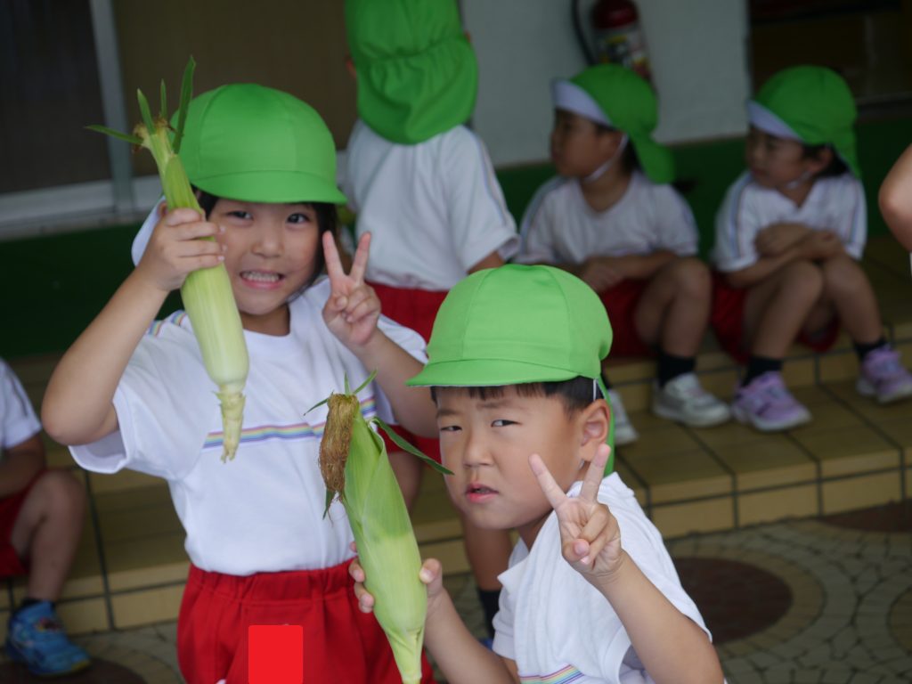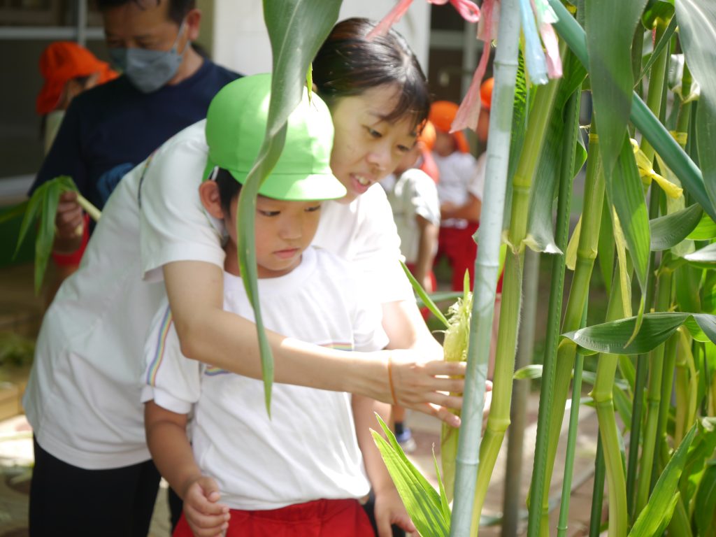 園庭の畑に苗を植えてから、年中組の子どもたちが大切に大切に育ててきたとうもろこし!