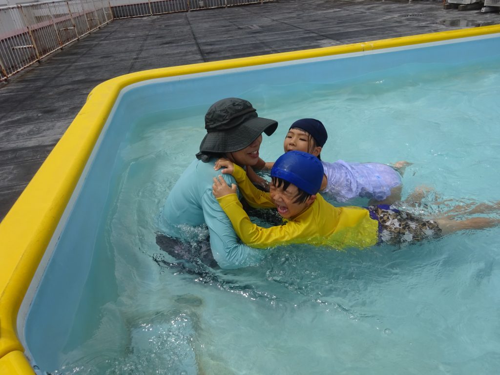 屋上プールでの水遊び♪みんな、すっかりお水と仲良しです♡
