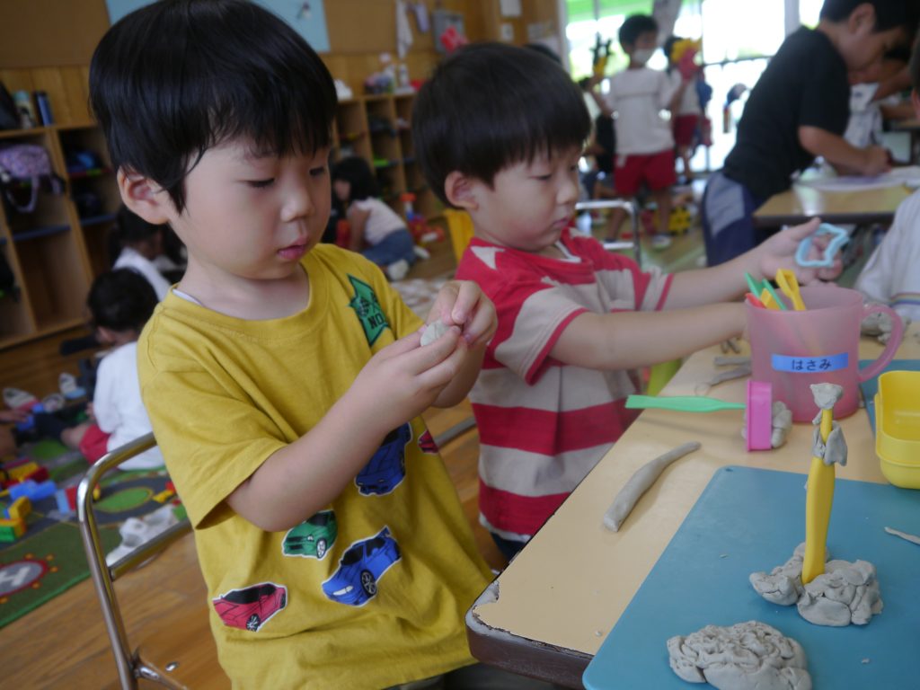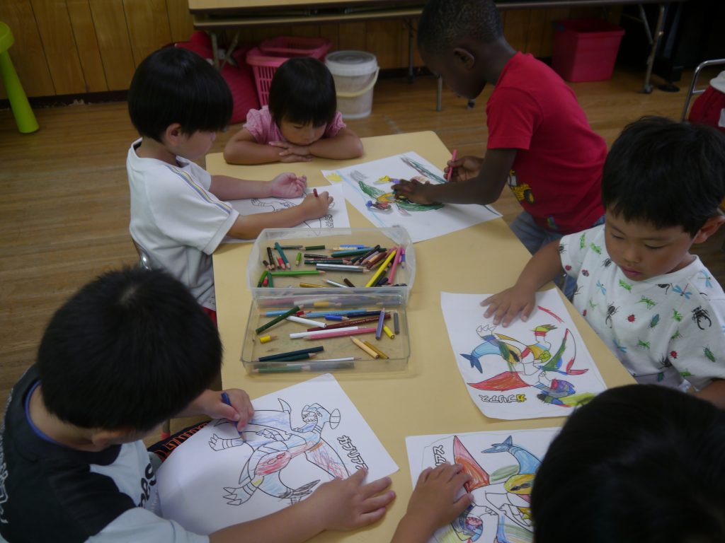 年少のお友達の様子です。ねんど遊びやぬりえがお気に入りでした。