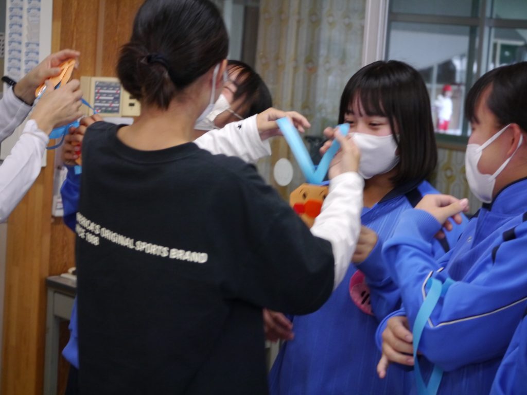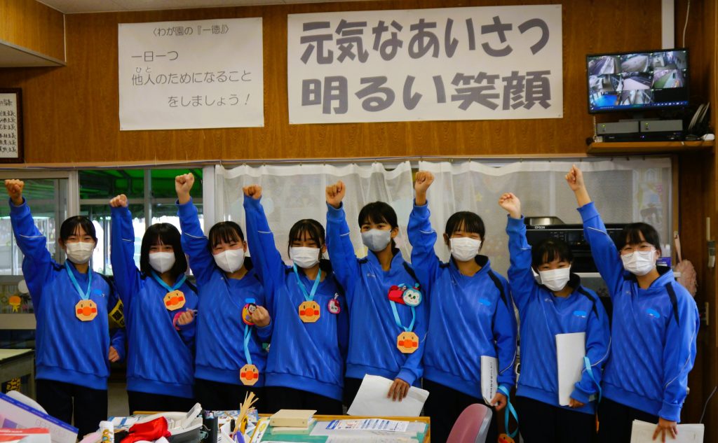 最後に「あんぱんまんポーズ」で、しっかりとしめくくり職場体験を終えた生徒たちに先生たちが大きな拍手をおくりました。