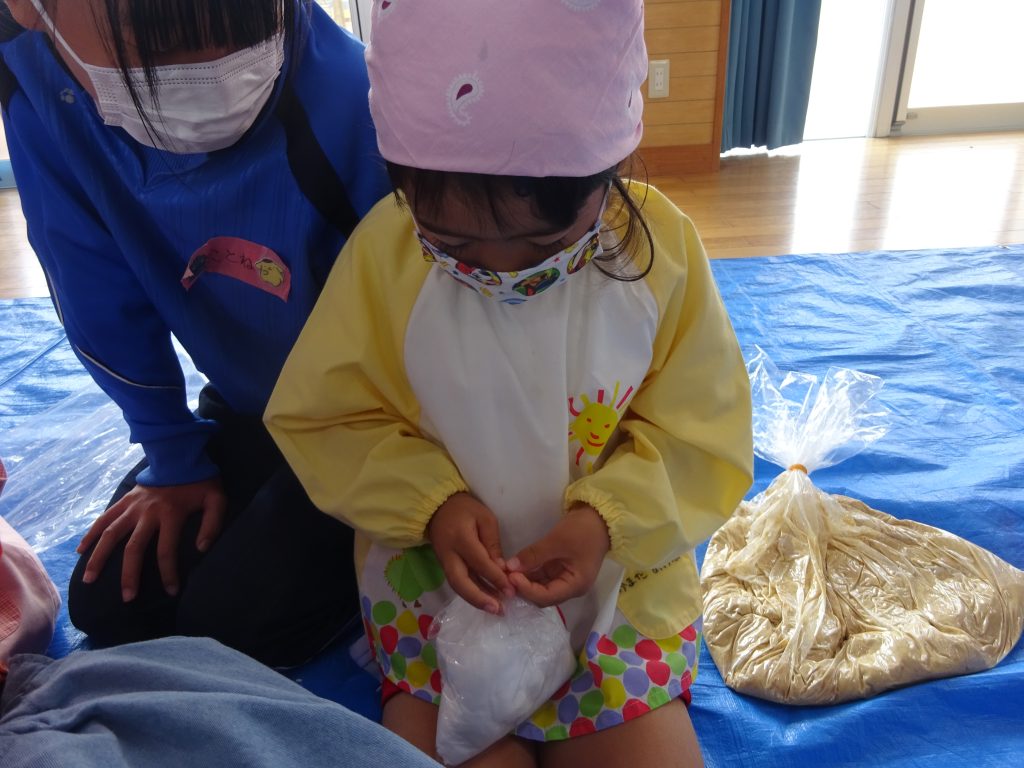 初日から園に来るとすぐに園庭で遊んでいる子どもたちのもとへ。笑顔で子どもたちと遊びはじめた姿にびっくり!!保育中も自ら動き、職員にもものおじせずいろいろたずねる姿がみられました。
