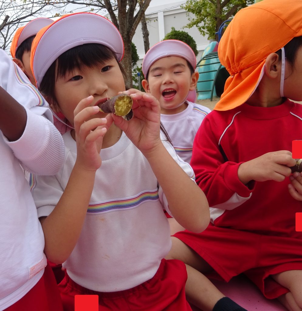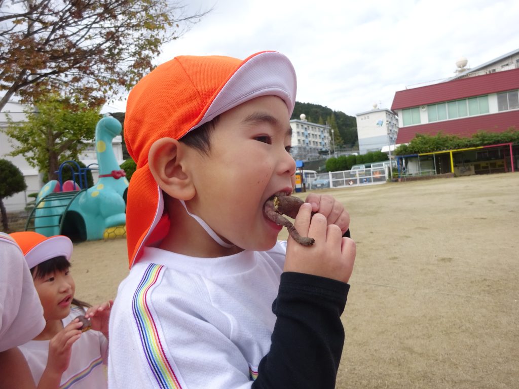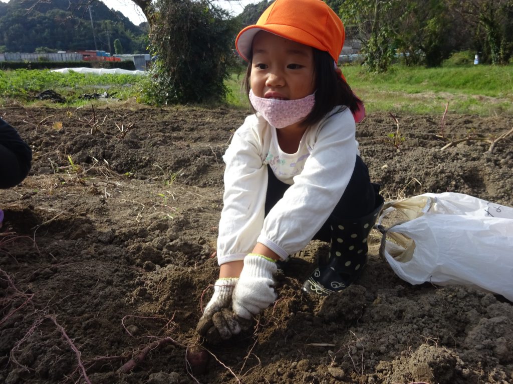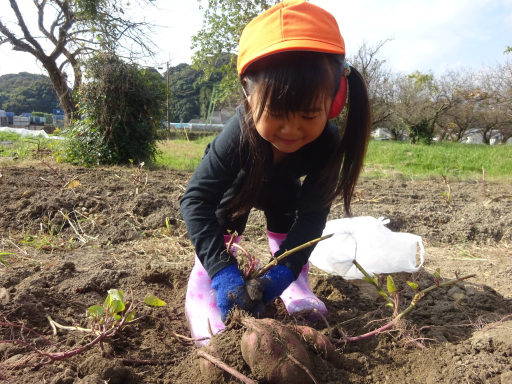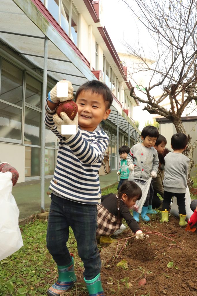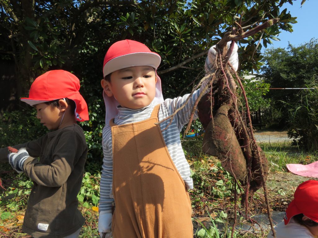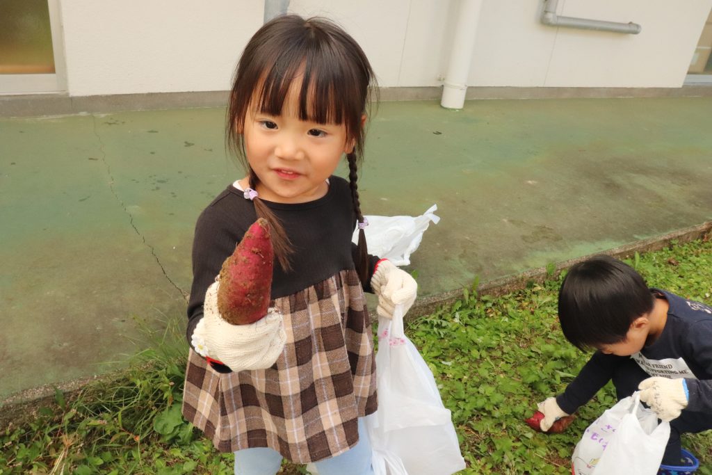 土からでてきたお芋を見て、形の面白さに友だちと大笑いしたり、大きなお芋にびっくりしたり、子どもたちは大忙しです😊