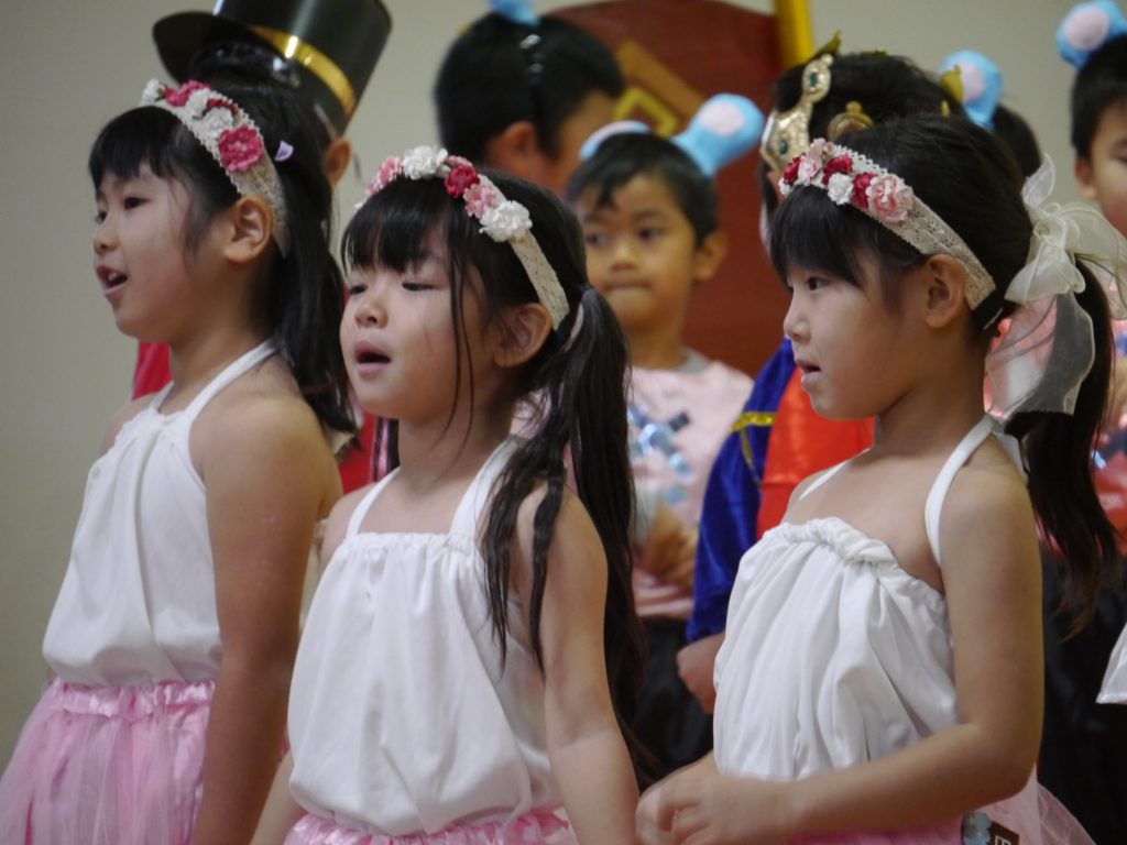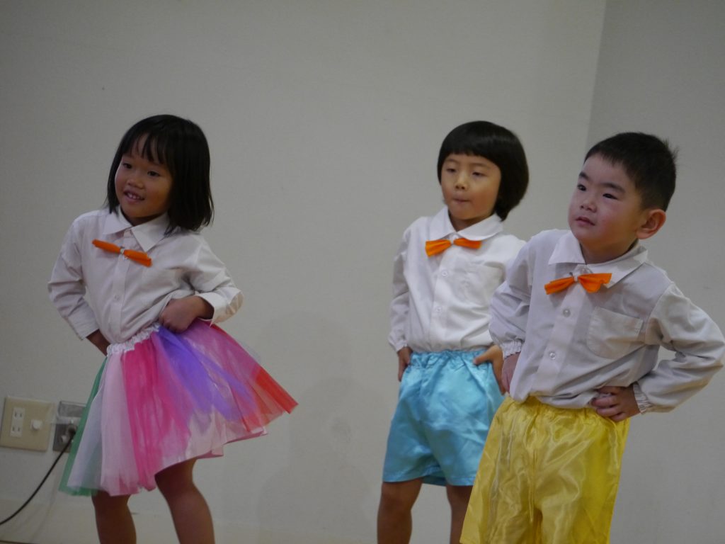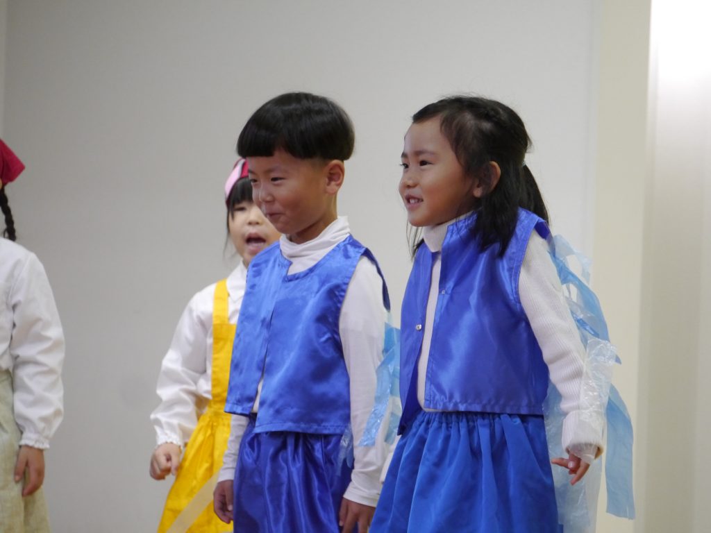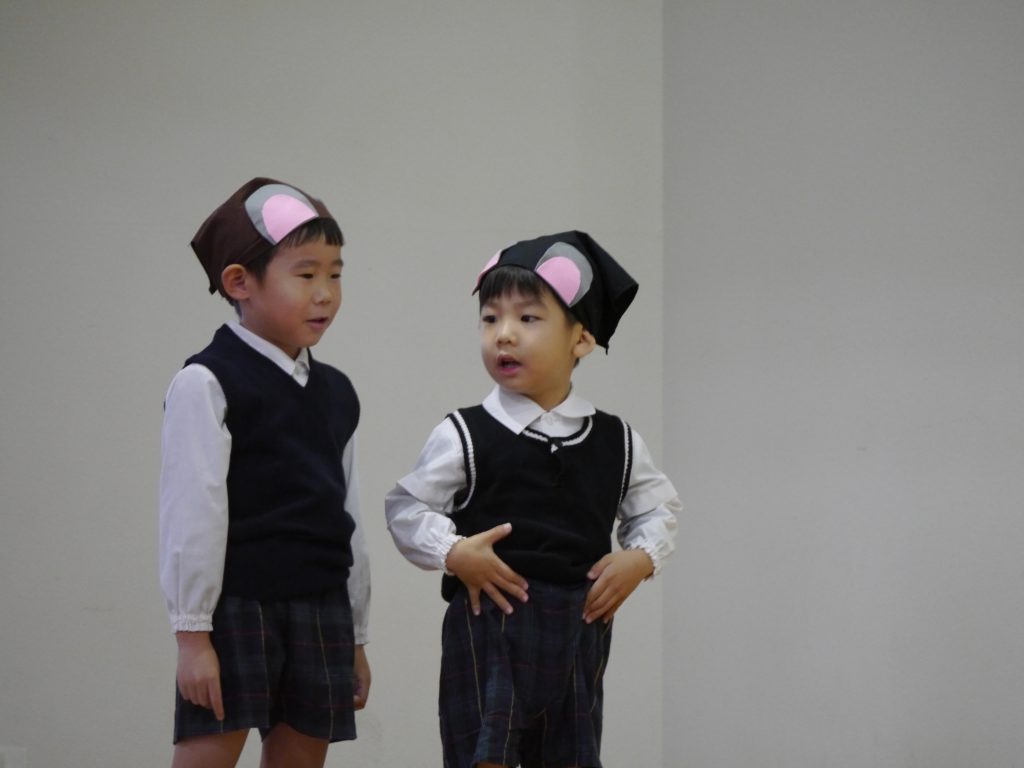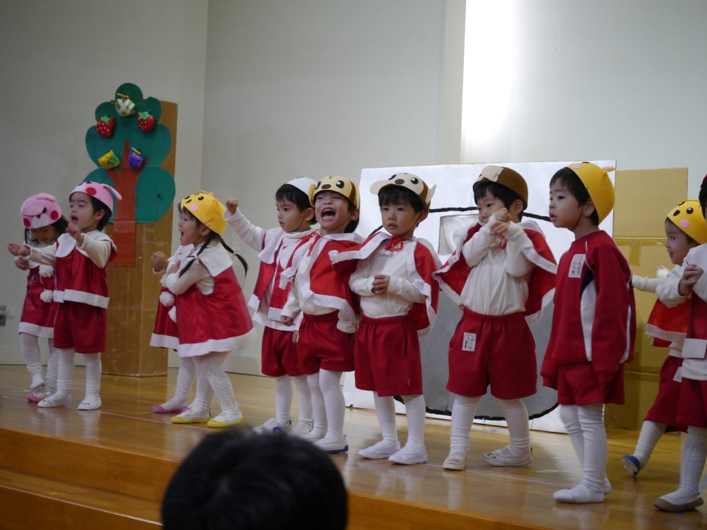 12月10日発表会。幼稚園の遊戯室にはおうちの方がたくさん詰めかけてくださいました。さあ練習の成果を見せる時です。
