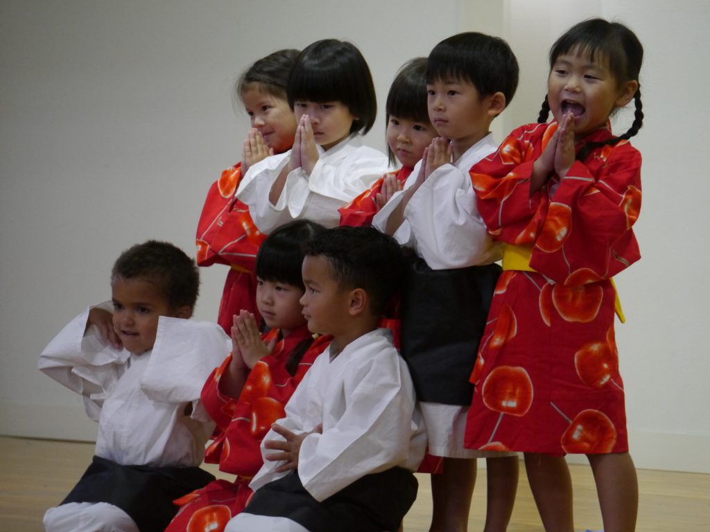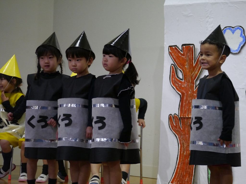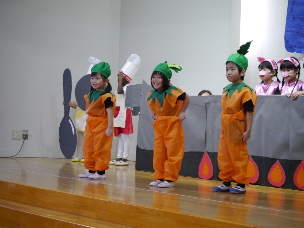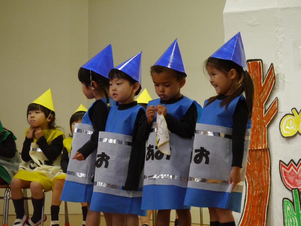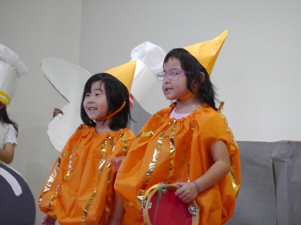 12月10日発表会。幼稚園の遊戯室にはおうちの方がたくさん詰めかけてくださいました。さあ練習の成果を見せる時です。
