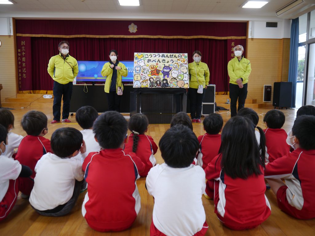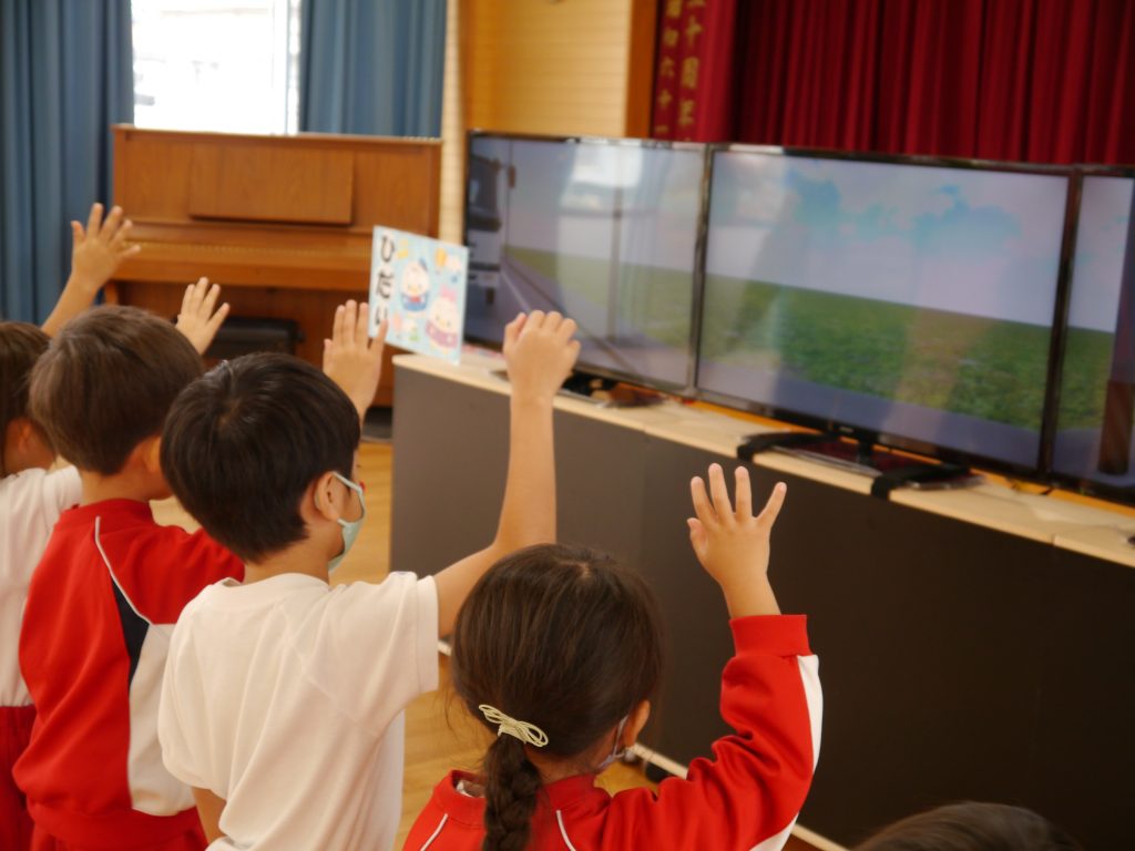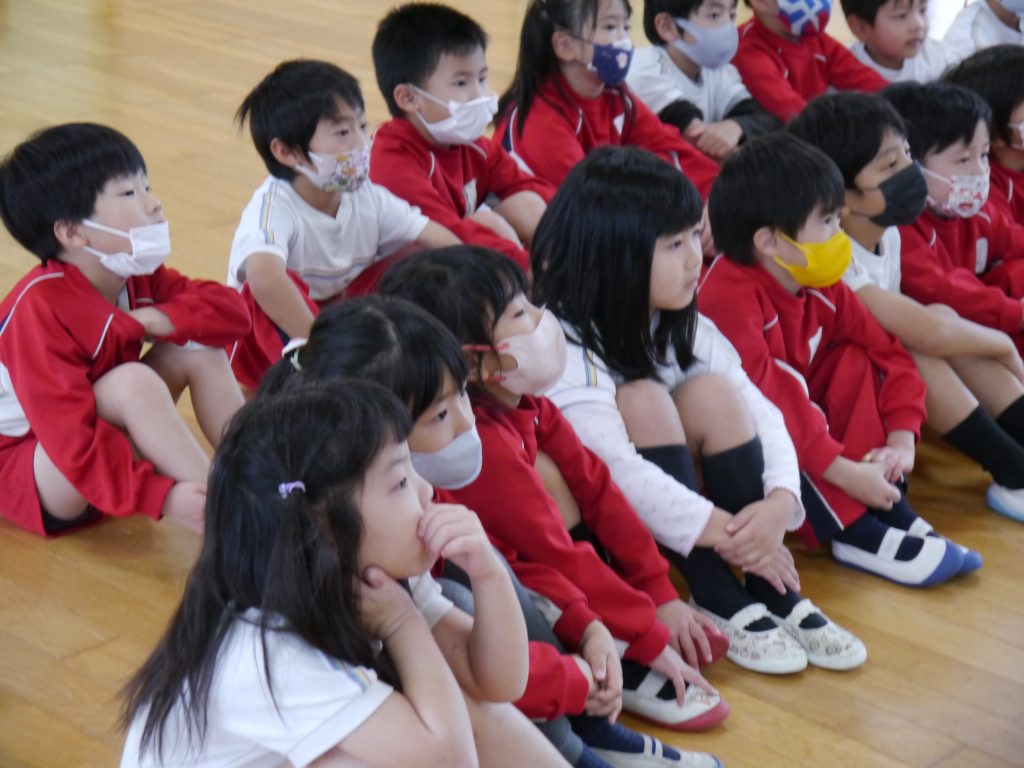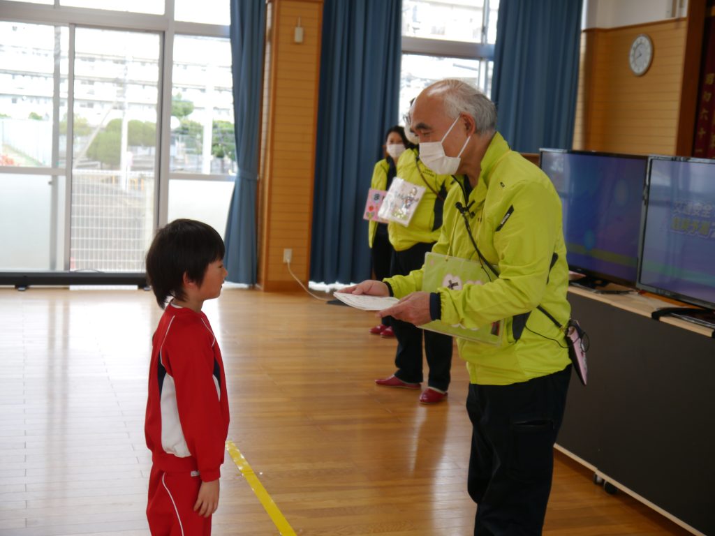 2023.12.15 交通安全教室(年長) 年長児を対象に佐世保市市民安全安心課による交通安全教室が行われました。今回は最終回ということで交通安全シュミレータを使った横断歩道のわたり方を学びました。さすが年長さん、交通安全教育指導員の方のお話を熱心に聞いていました。横断歩道の安全なわたり方を学習しましたが、園外でもしっかりと実践できることを願っています。修了証をそらさんが代表で受け取りました。
