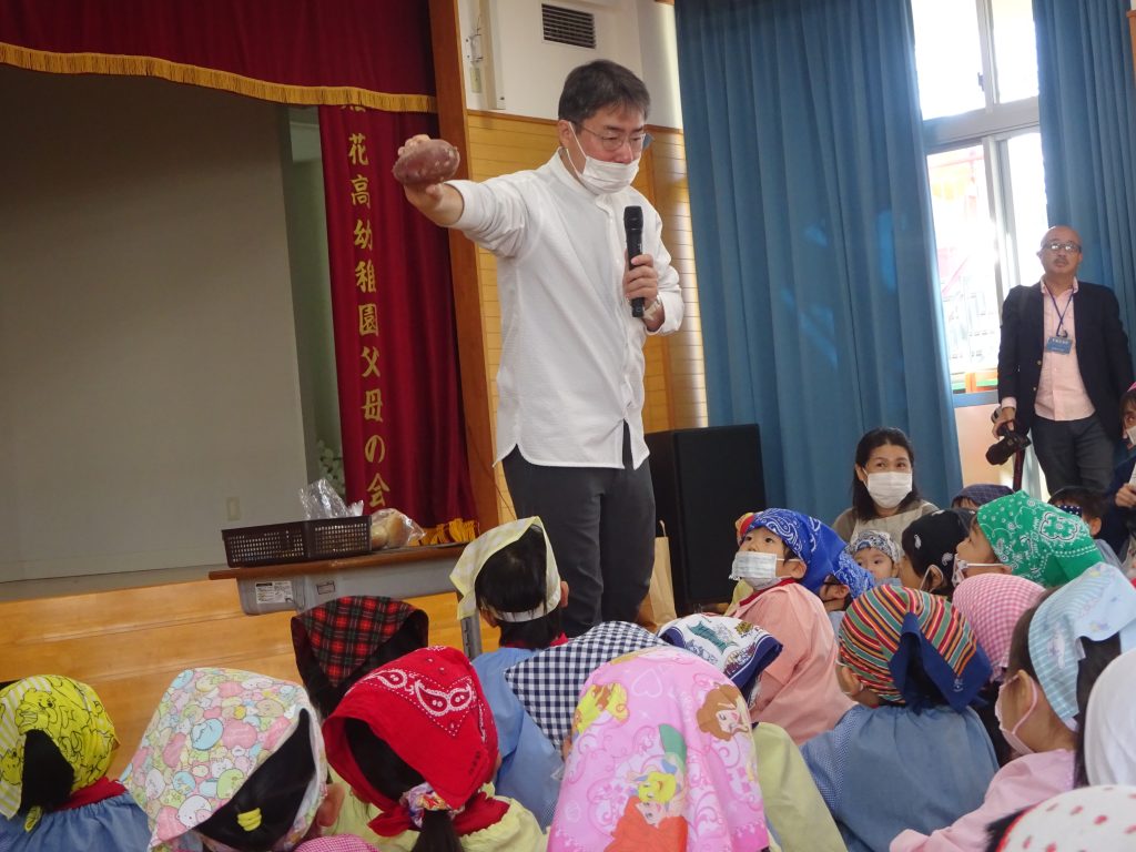 餅つきだけでなく、始まる前には、長崎県五島地方の特産品である「かんころ餅」や「かんころ」の作り方をお話してくださいます。
